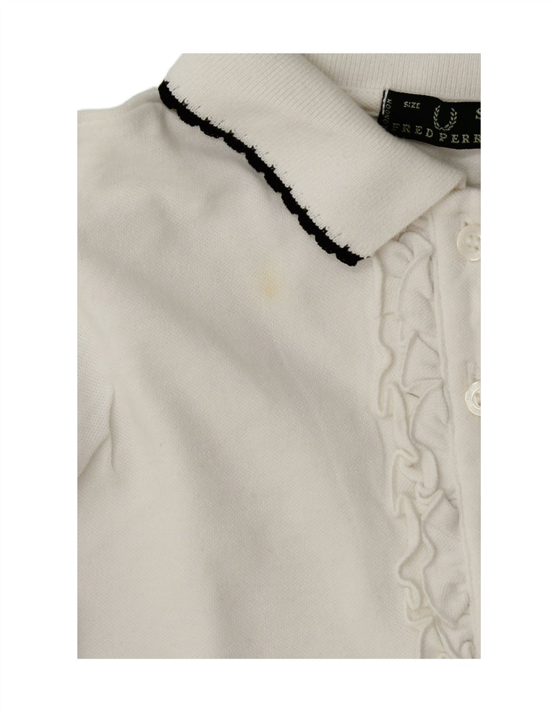 FRED PERRY Womens Long Sleeve Polo Shirt UK 10 Small White Cotton