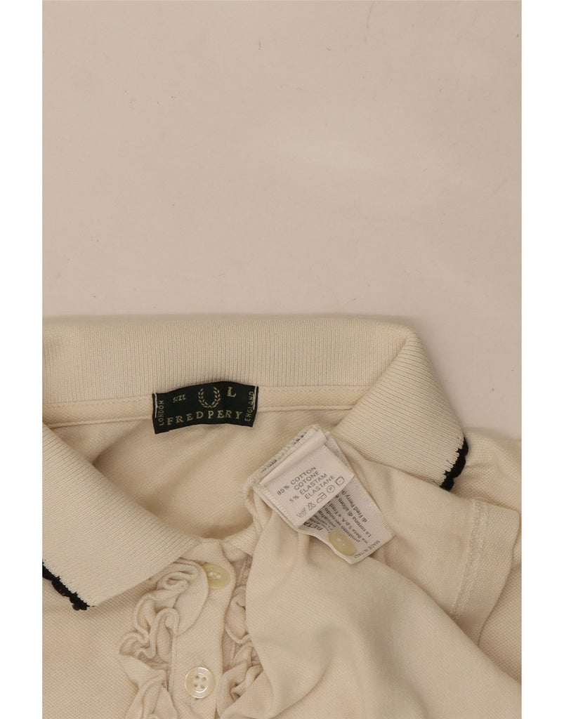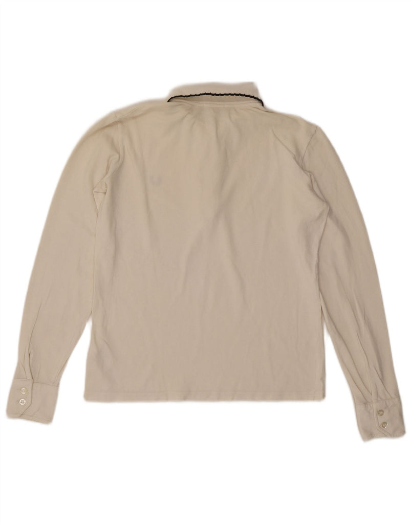 Camisa polo feminina FRED PERRY com babados na frente de manga comprida Reino Unido 14 grande branca