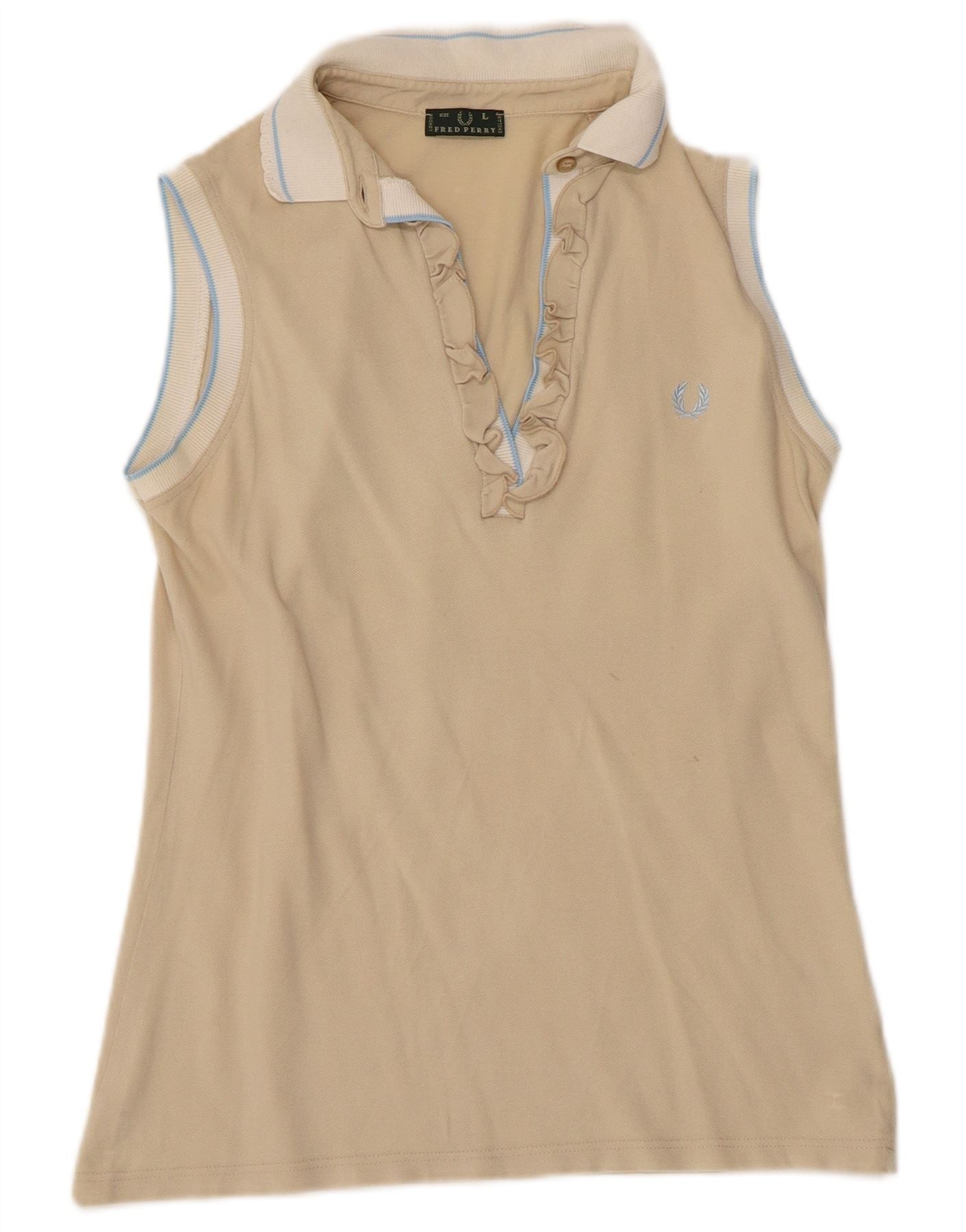 Camisa polo feminina FRED PERRY com babados na frente Reino Unido 14 grande bloco colorido bege