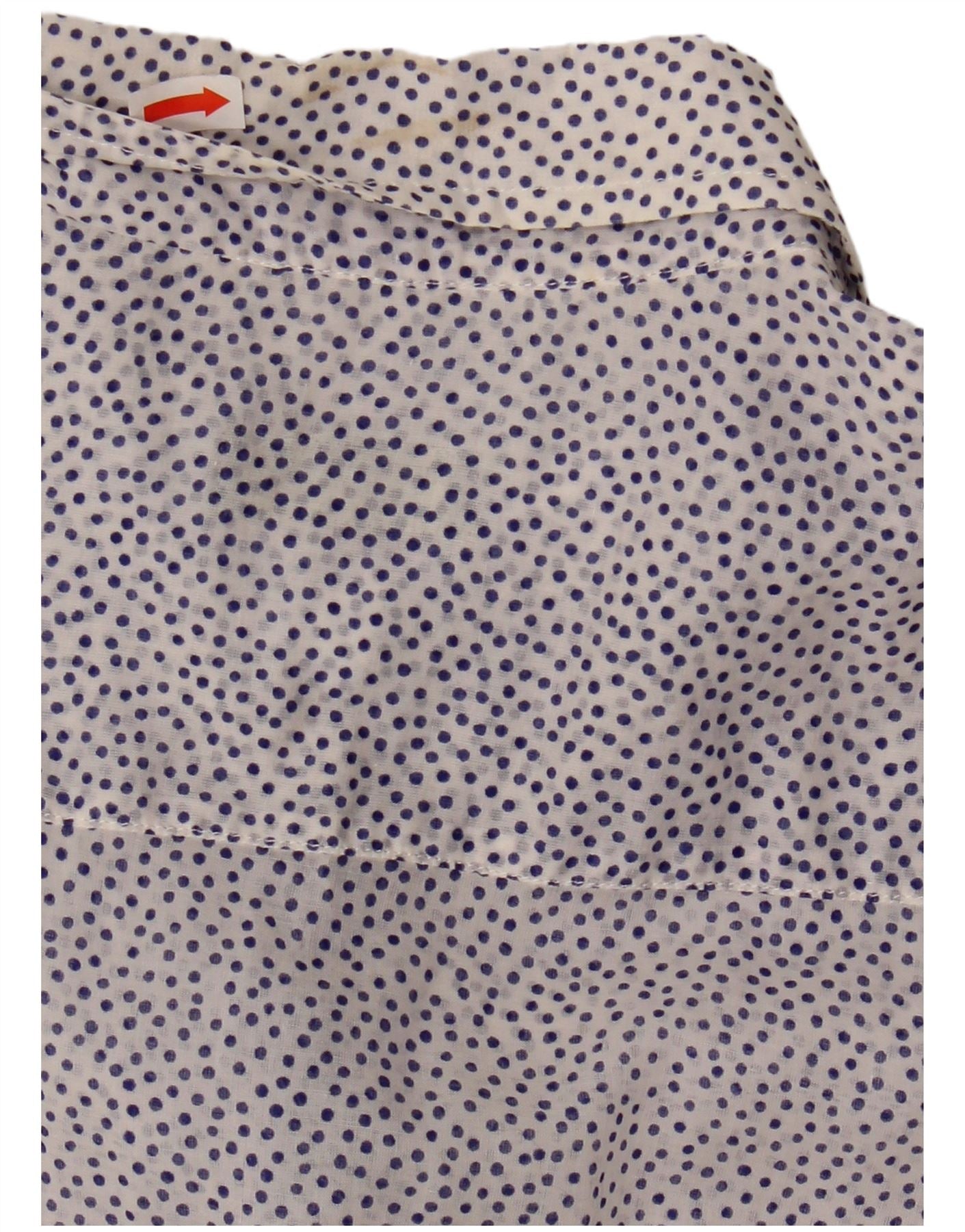- Descrição da IA: Esta camisa feminina Fred Perry é confeccionada em tecido leve de algodão branco. Ele apresenta um padrão clássico de bolinhas azuis por toda parte. O decote com gola e botões na frente oferecem um apelo atemporal. As mangas curtas proporcionam um ajuste confortável e regular. Um logotipo bordado sutil adiciona um toque exclusivo.