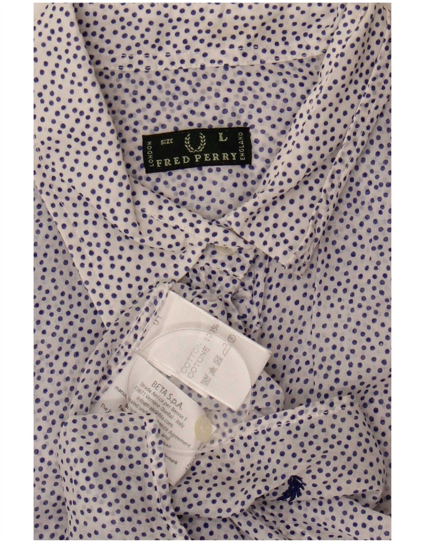 Camisa feminina transparente Fred Perry Reino Unido 14 grande algodão manchado branco