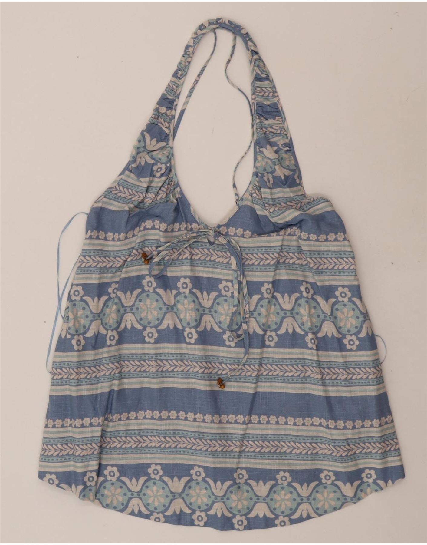 FREE PEOPLE Top feminino frente única UK 14 azul médio floral