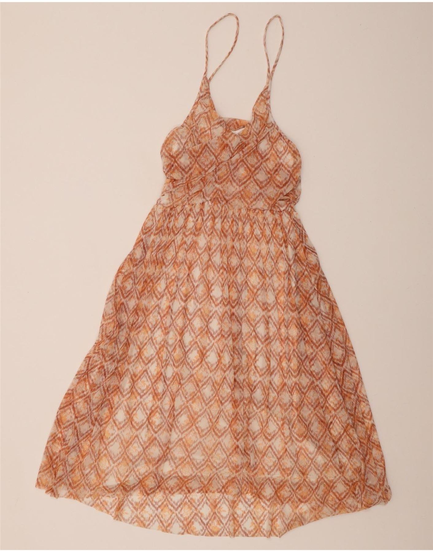FREE PEOPLE Vestido feminino slim fit deslizante Reino Unido 14 grande laranja geométrico