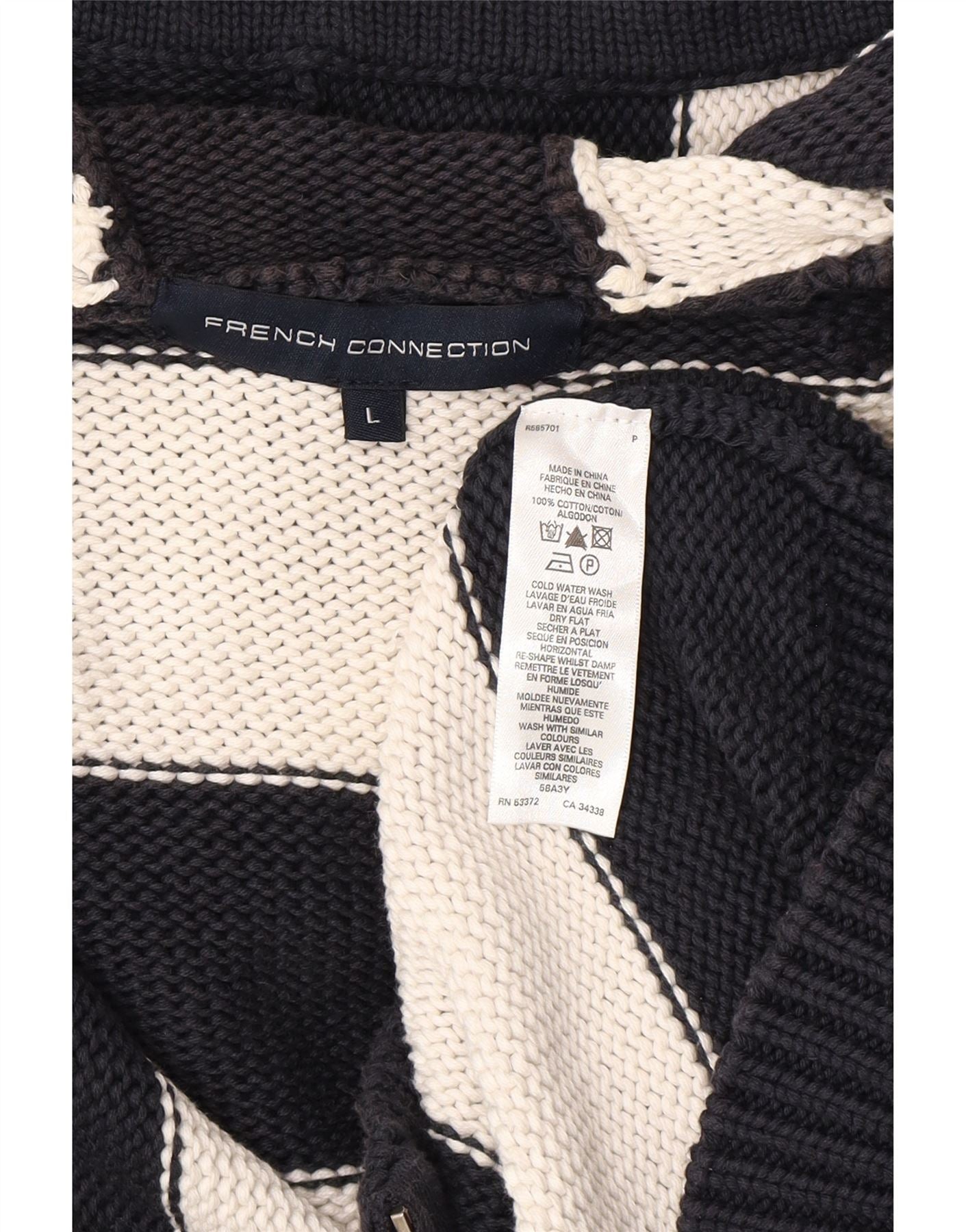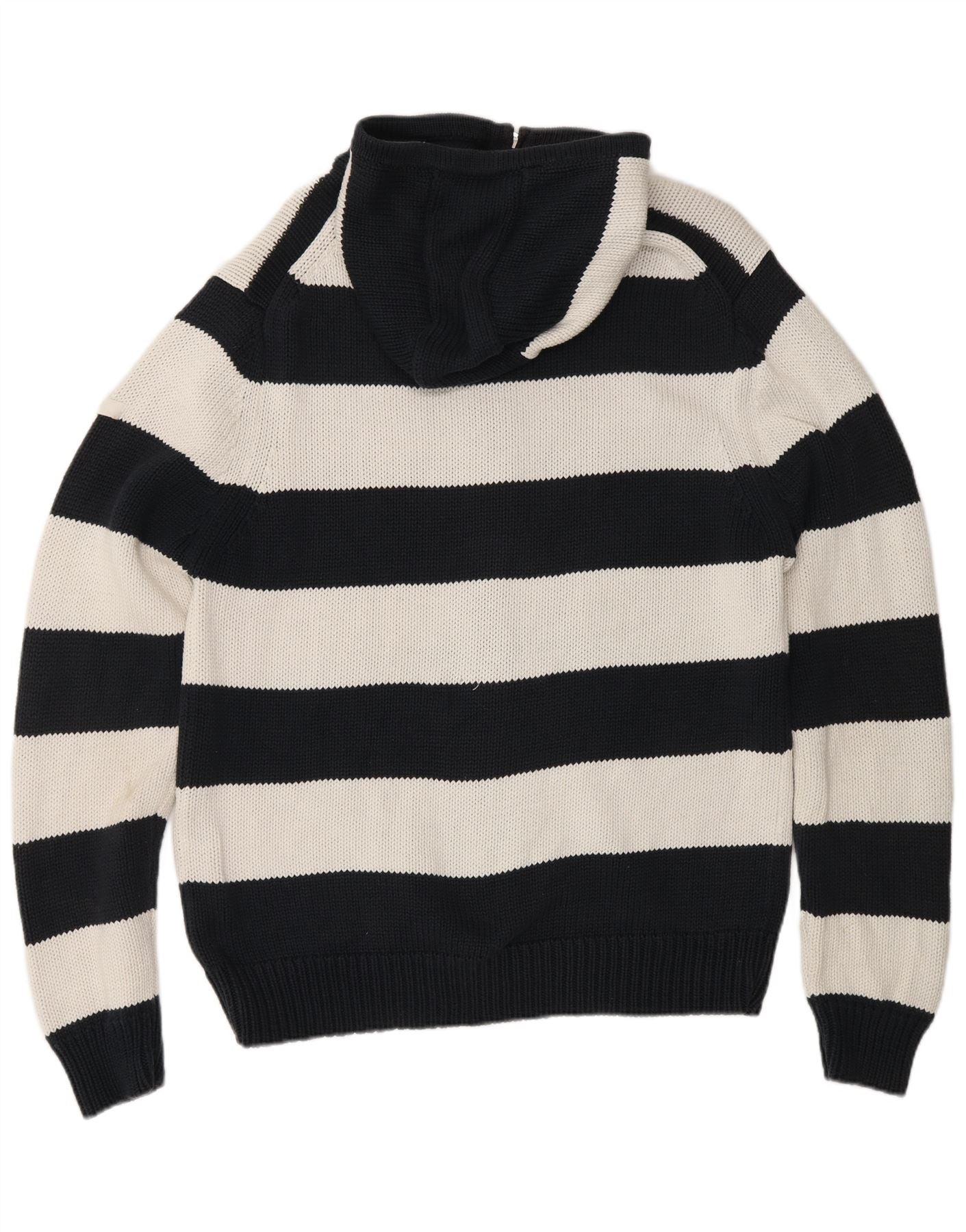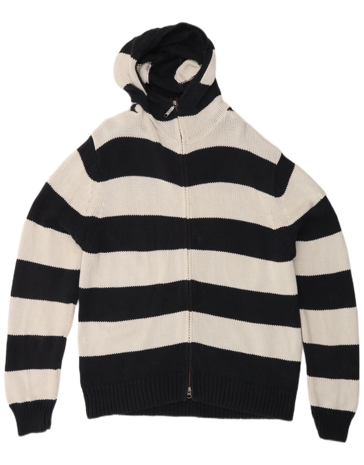 FRENCH CONNECTION Mens Hooded Cardigan Sweater Large Navy Blue Striped