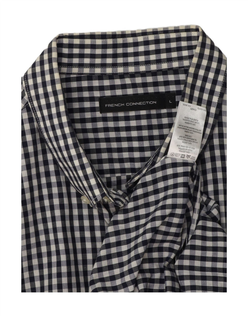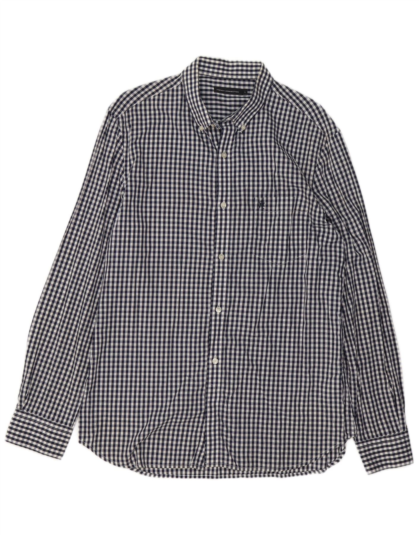 Camisa masculina FRENCH CONNECTION grande algodão guingão azul marinho