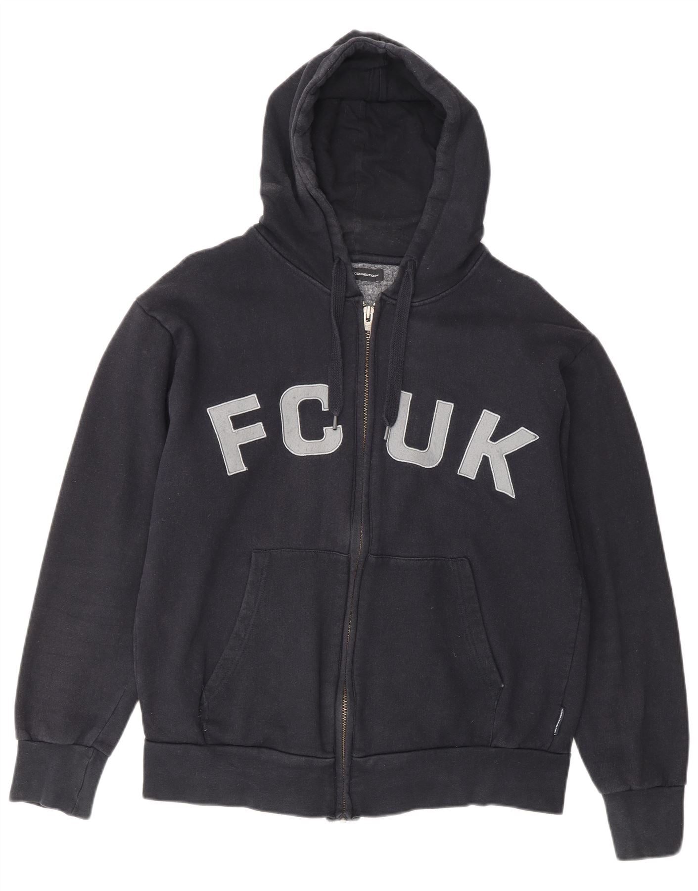FRENCH CONNECTION Suéter feminino Fcuk Zip com capuz Reino Unido 14 Médio Azul Marinho