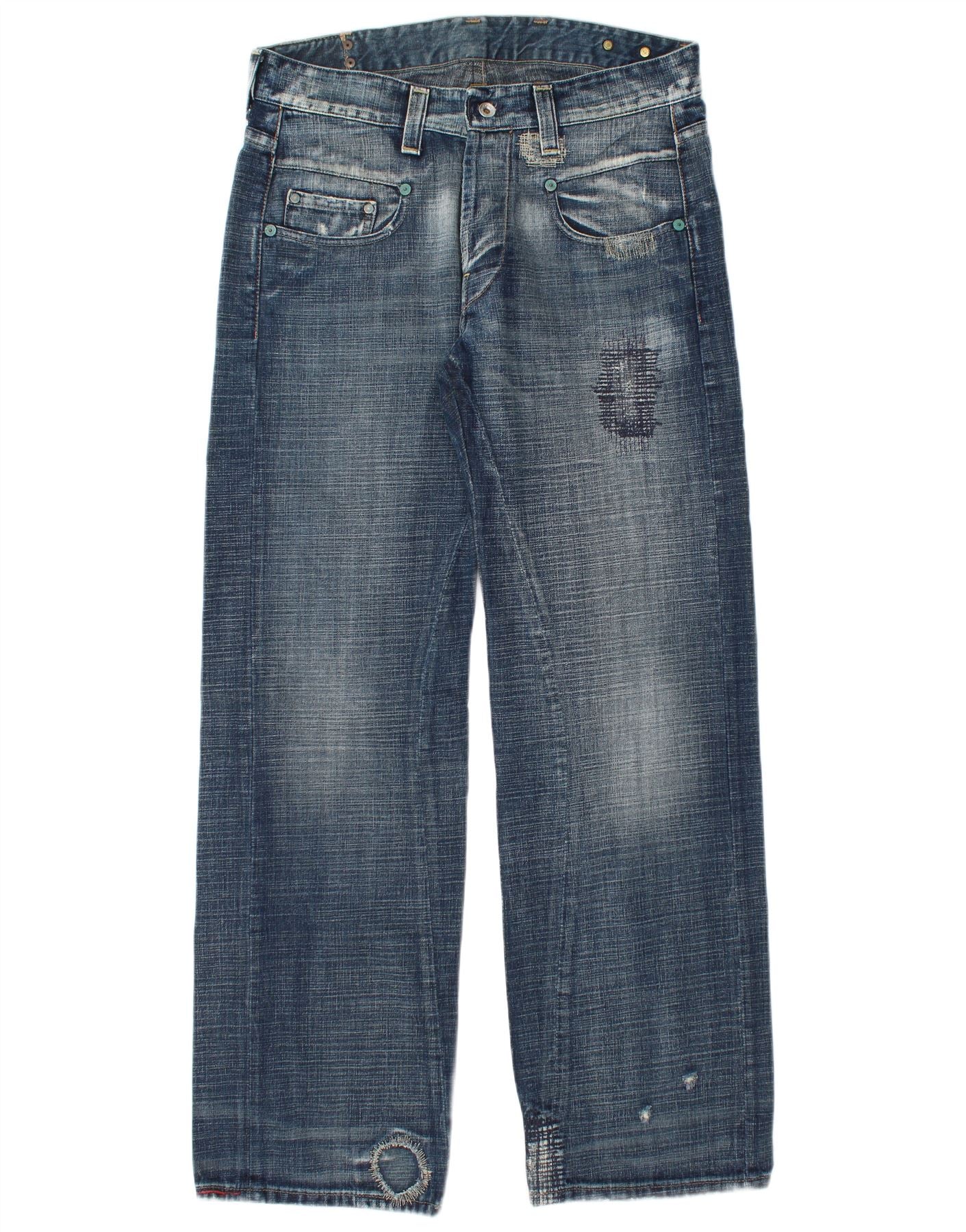- Condição: Condição de uso razoável: o item foi usado com frequência e pode ter inúmeras falhas - Bainhas desgastadas. Bolsos gastos.