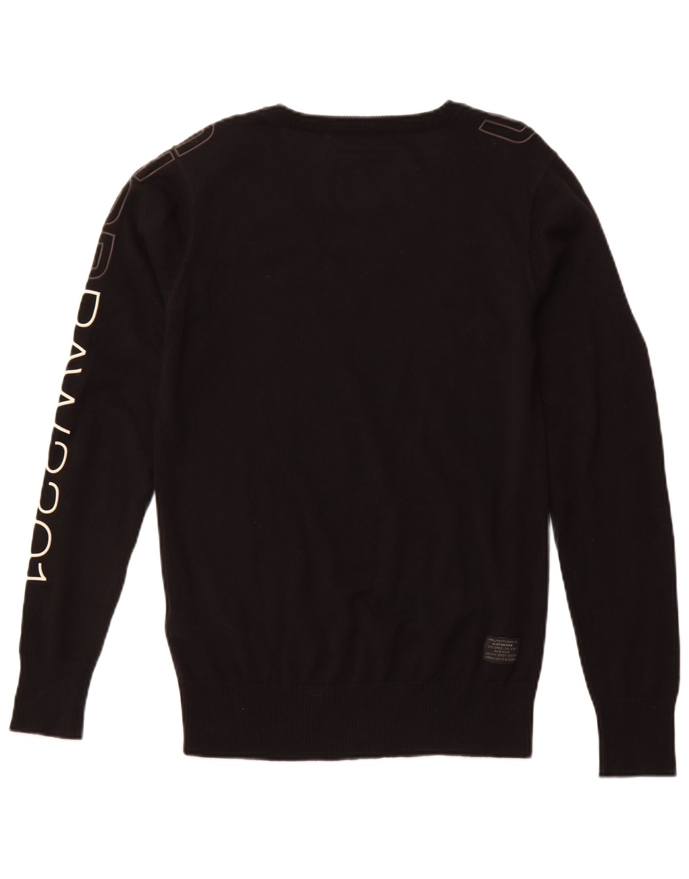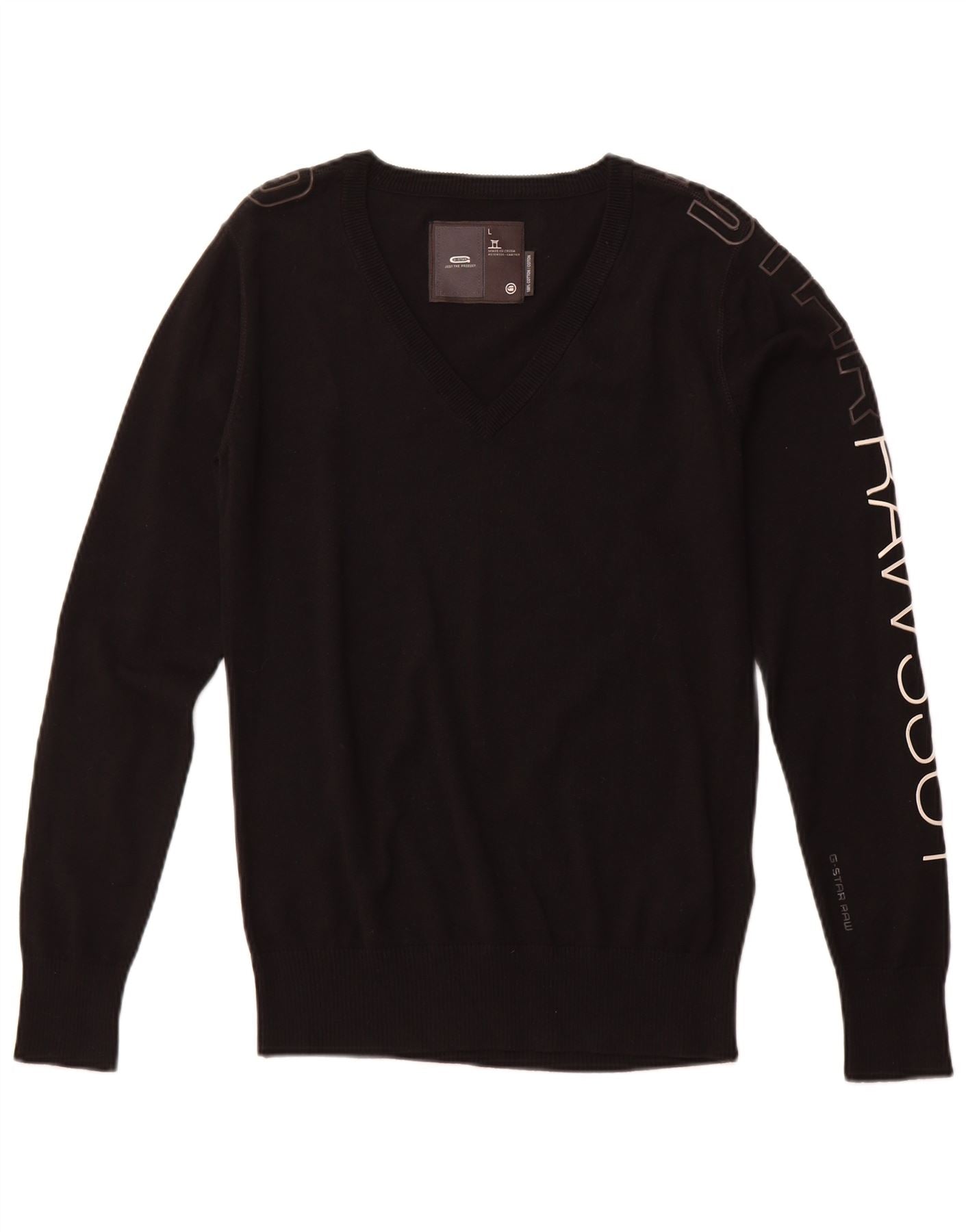 G-STAR Suéter masculino gráfico com decote em V grande algodão preto