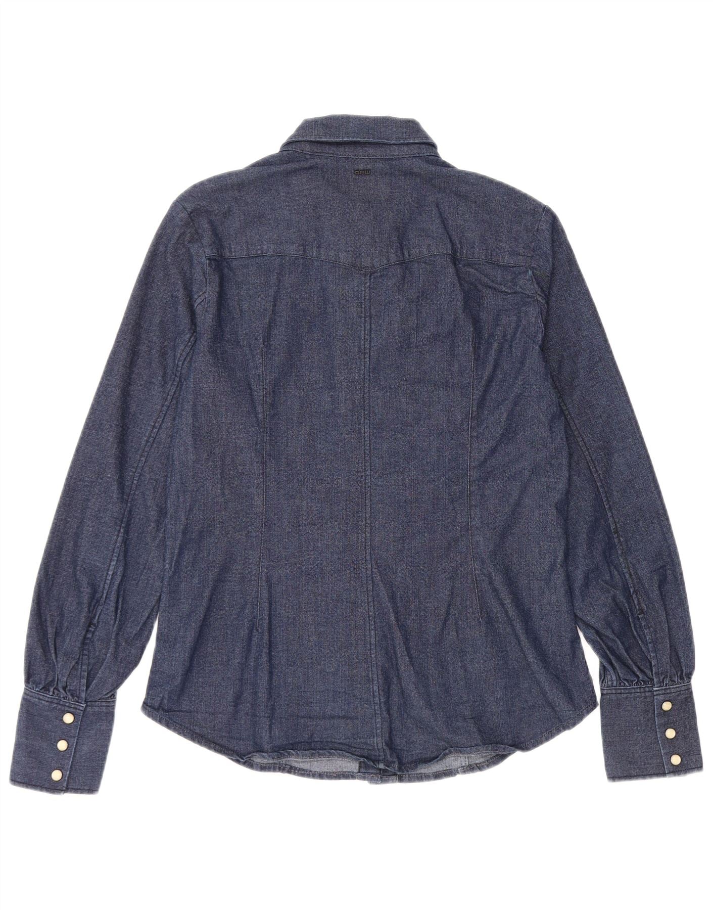 Blusa feminina G-Star com babados frontais jeans Reino Unido 10 pequeno algodão azul marinho