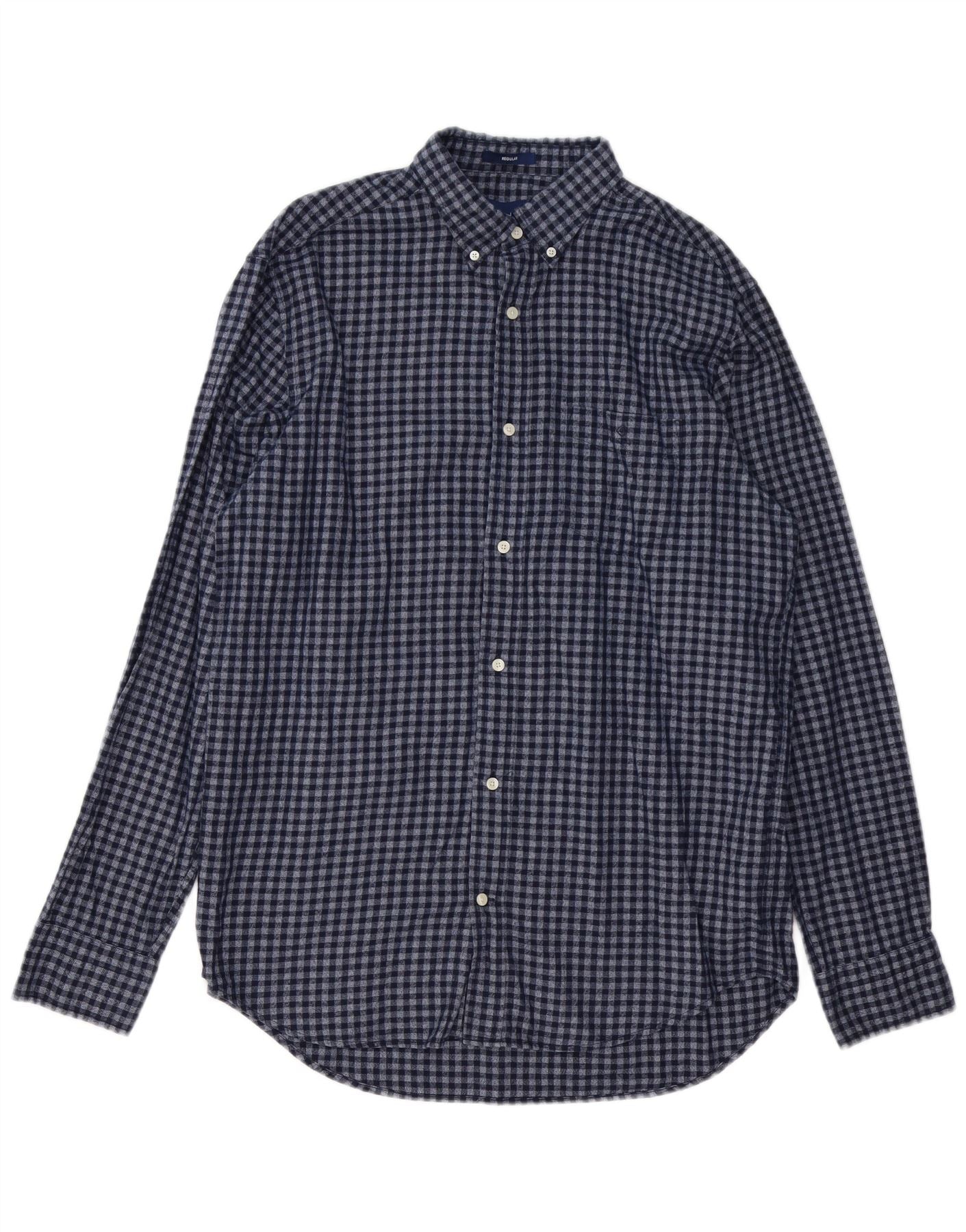 Camisa masculina de flanela GANT tamanho 41/42 16 1/2 grande azul marinho guingão