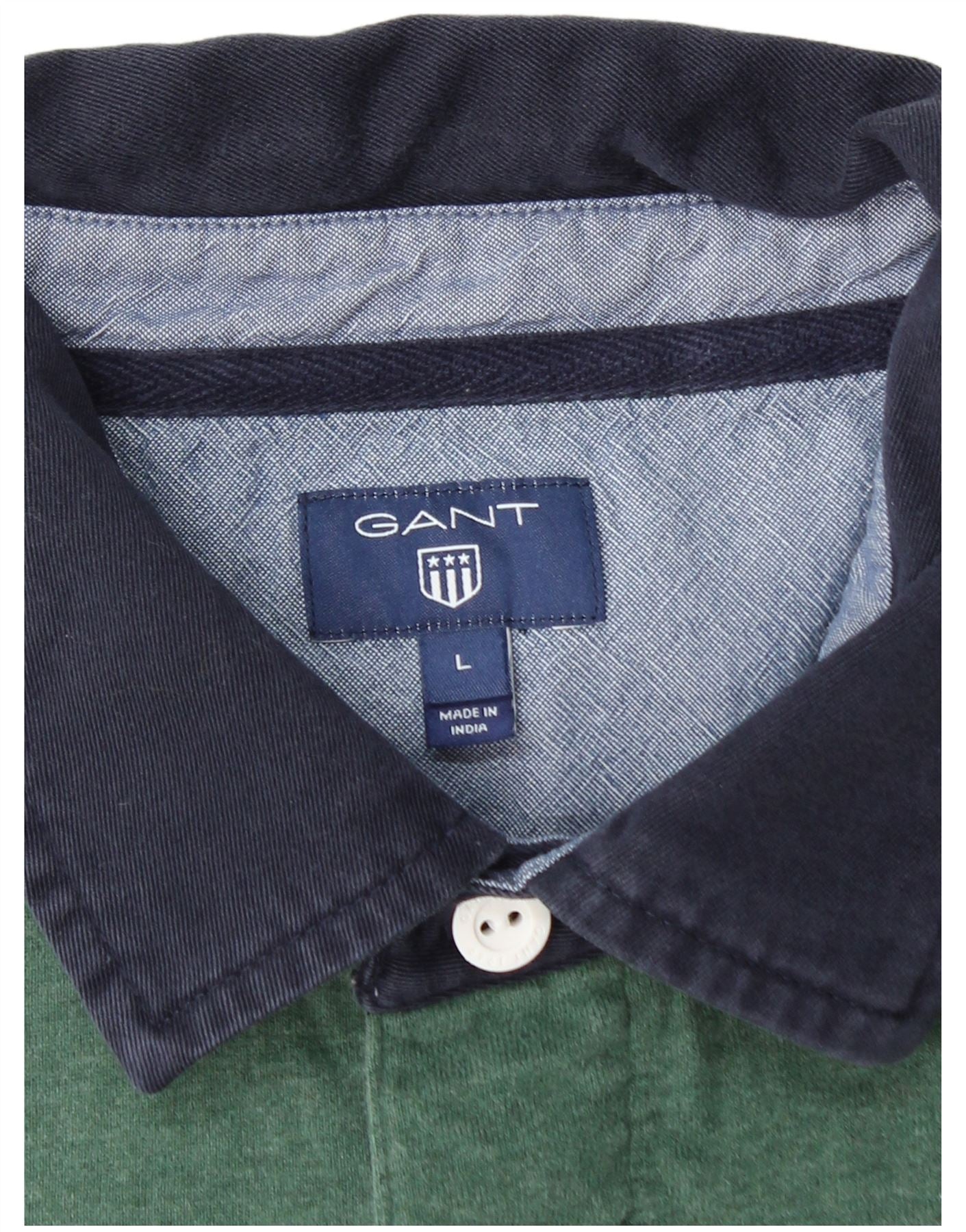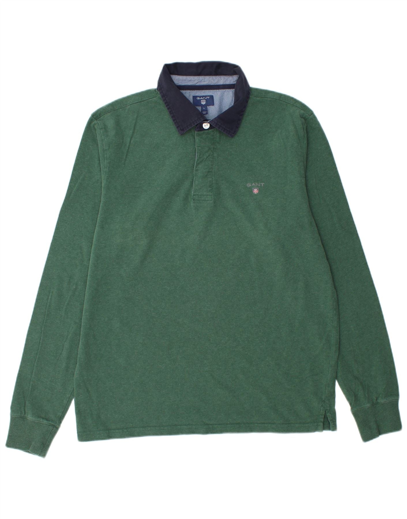 Camisa polo masculina de rugby de manga comprida GANT grande algodão verde