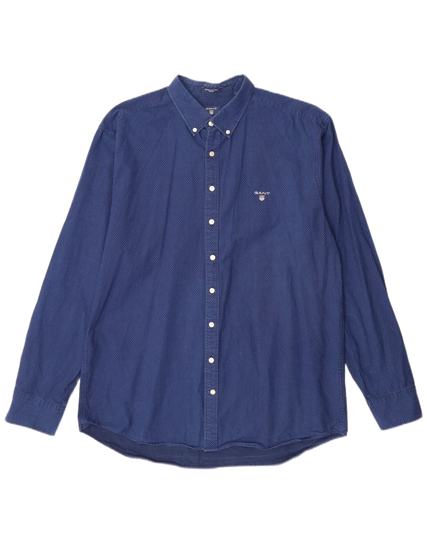 GANT Camisa masculina de ajuste regular tamanho 45/46 18 2XL algodão geométrico azul
