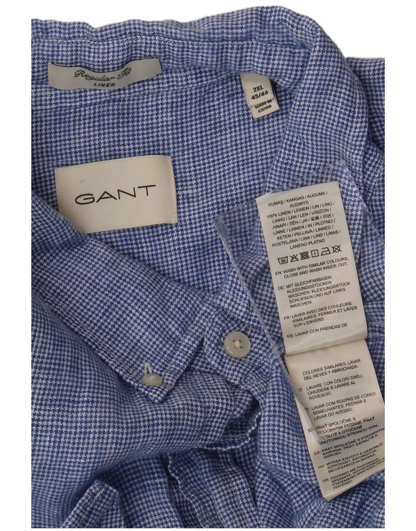 GANT Camisa masculina de manga curta de ajuste regular tamanho 45/46 2XL azul Houndstooth