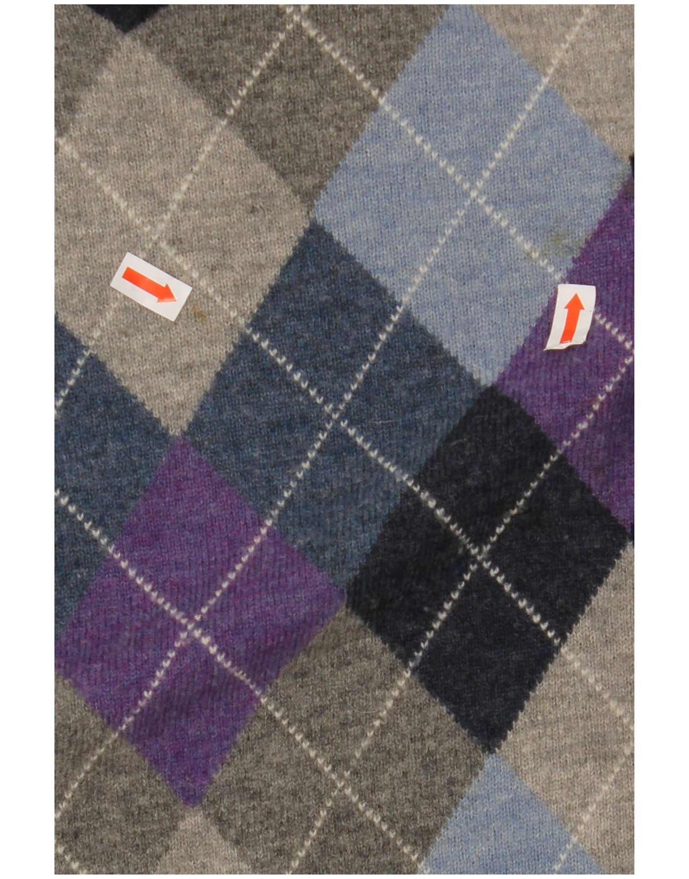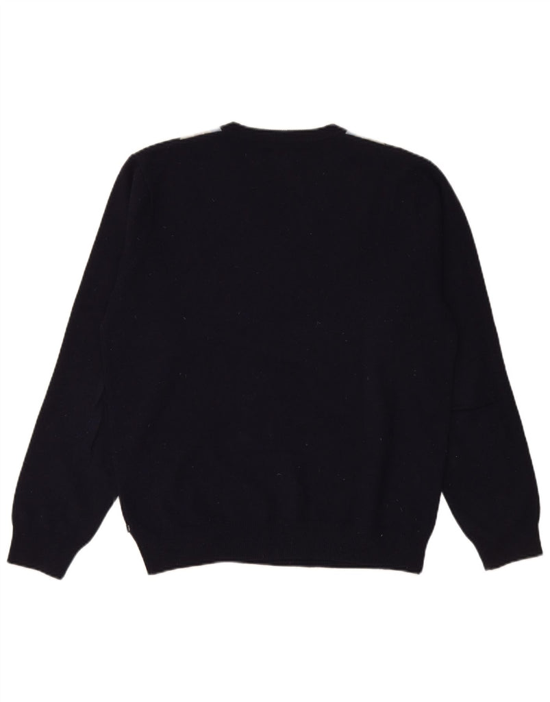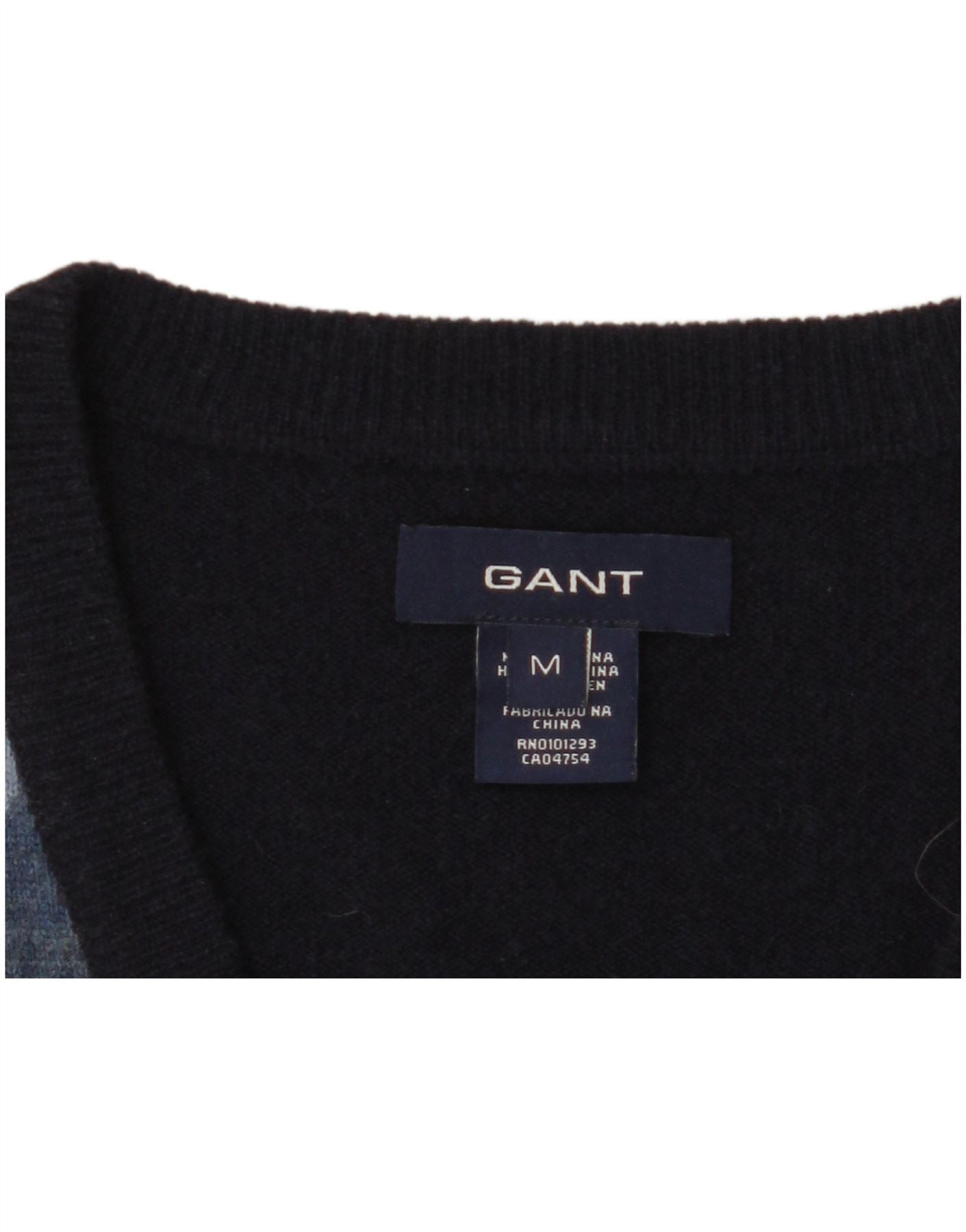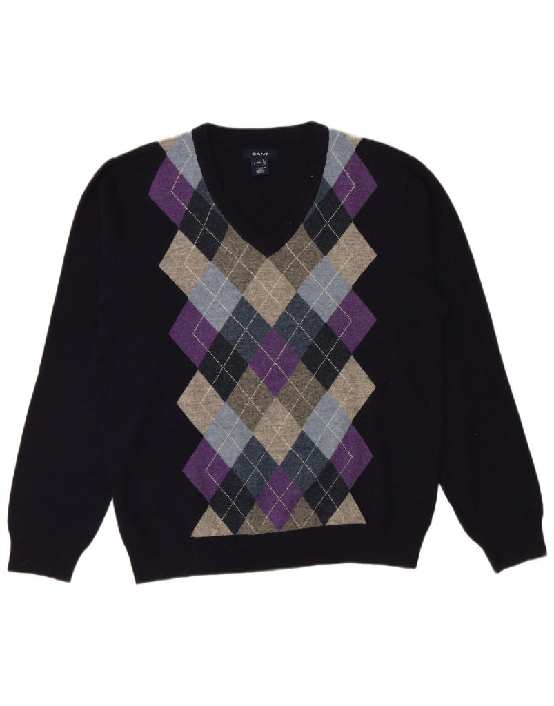 GANT Mens V-Neck Jumper Sweater Medium Navy Blue Argyle/Diamond Lambswool