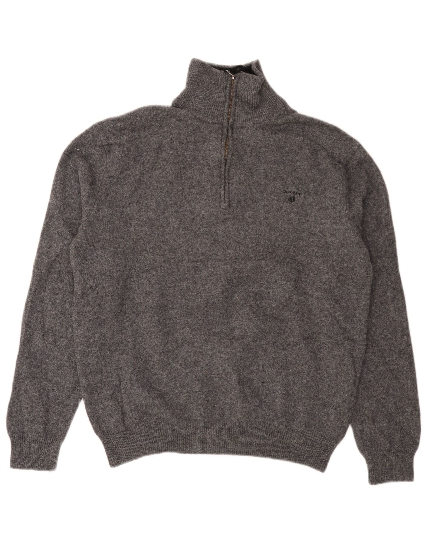 Suéter masculino GANT com zíper e gola 2XL lã de cordeiro cinza