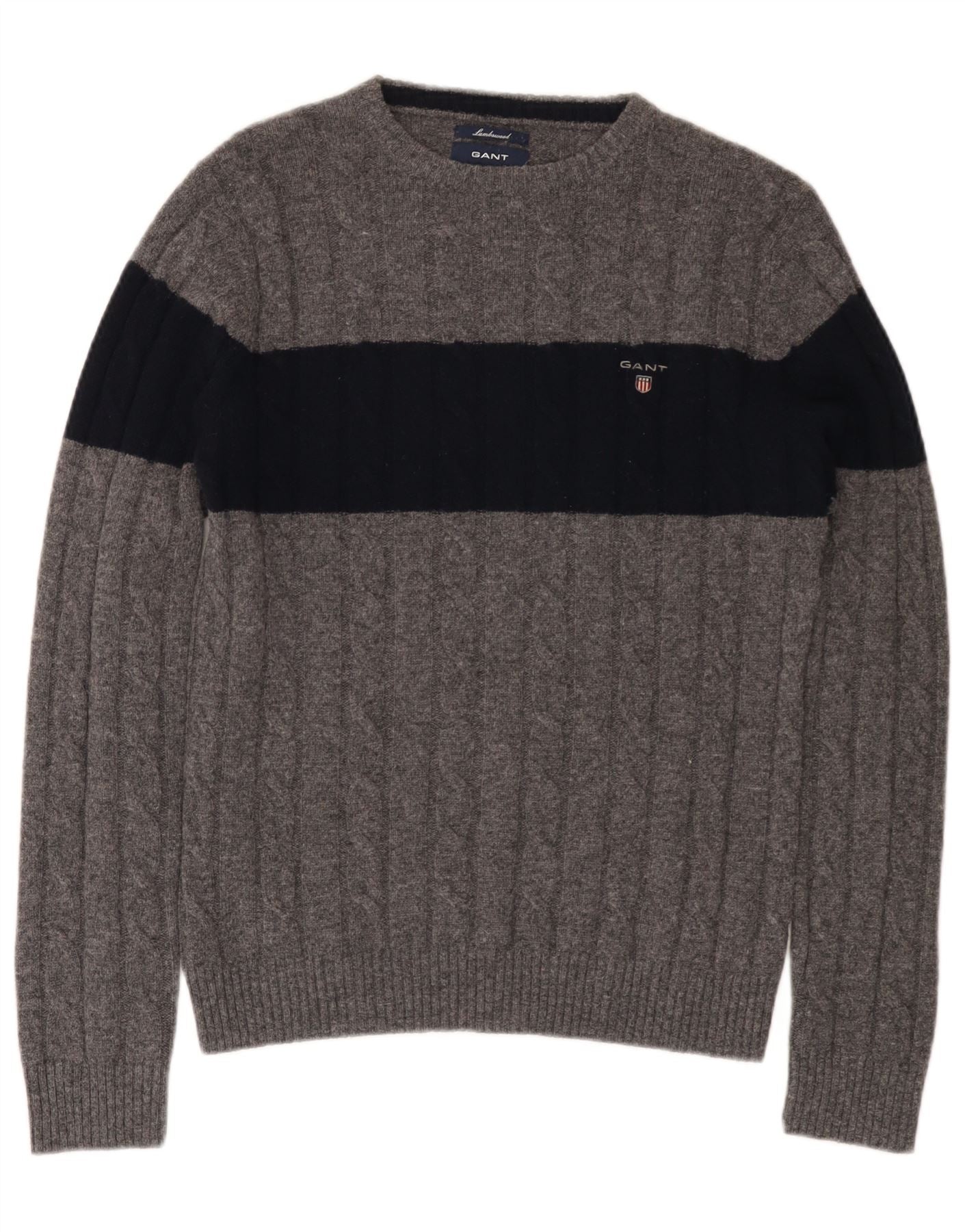 Suéter feminino GANT com gola redonda UK 14 bloco colorido cinza médio