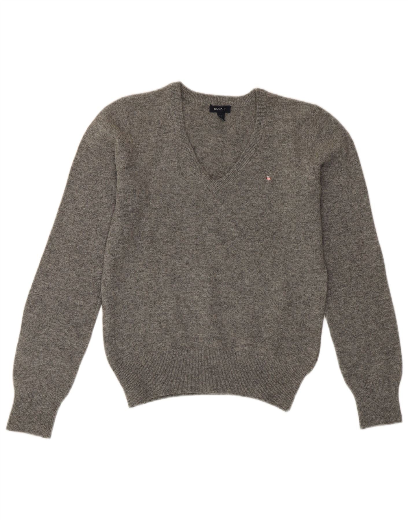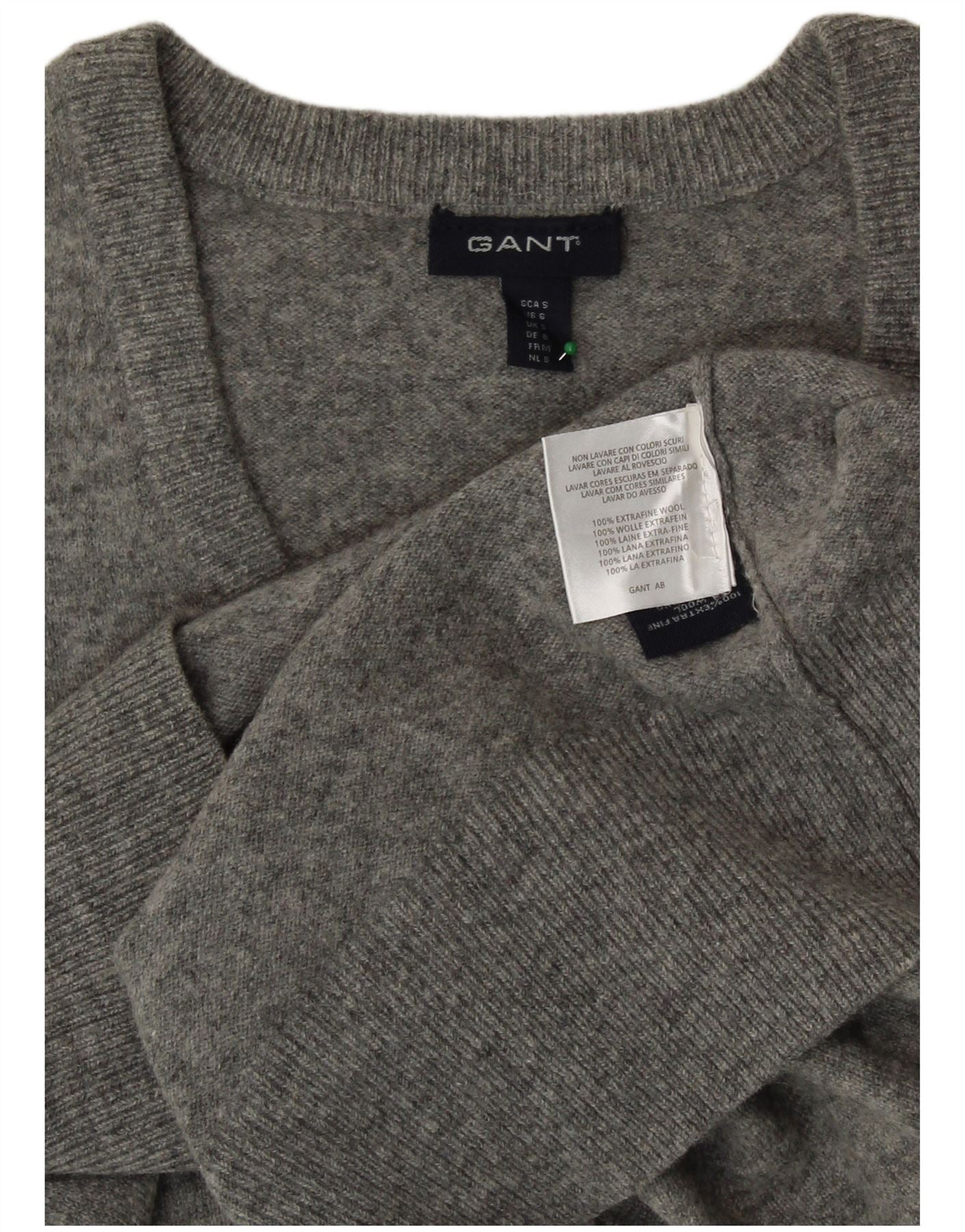 GANT Suéter feminino curto com decote em V Reino Unido 10 lã cinza pequena