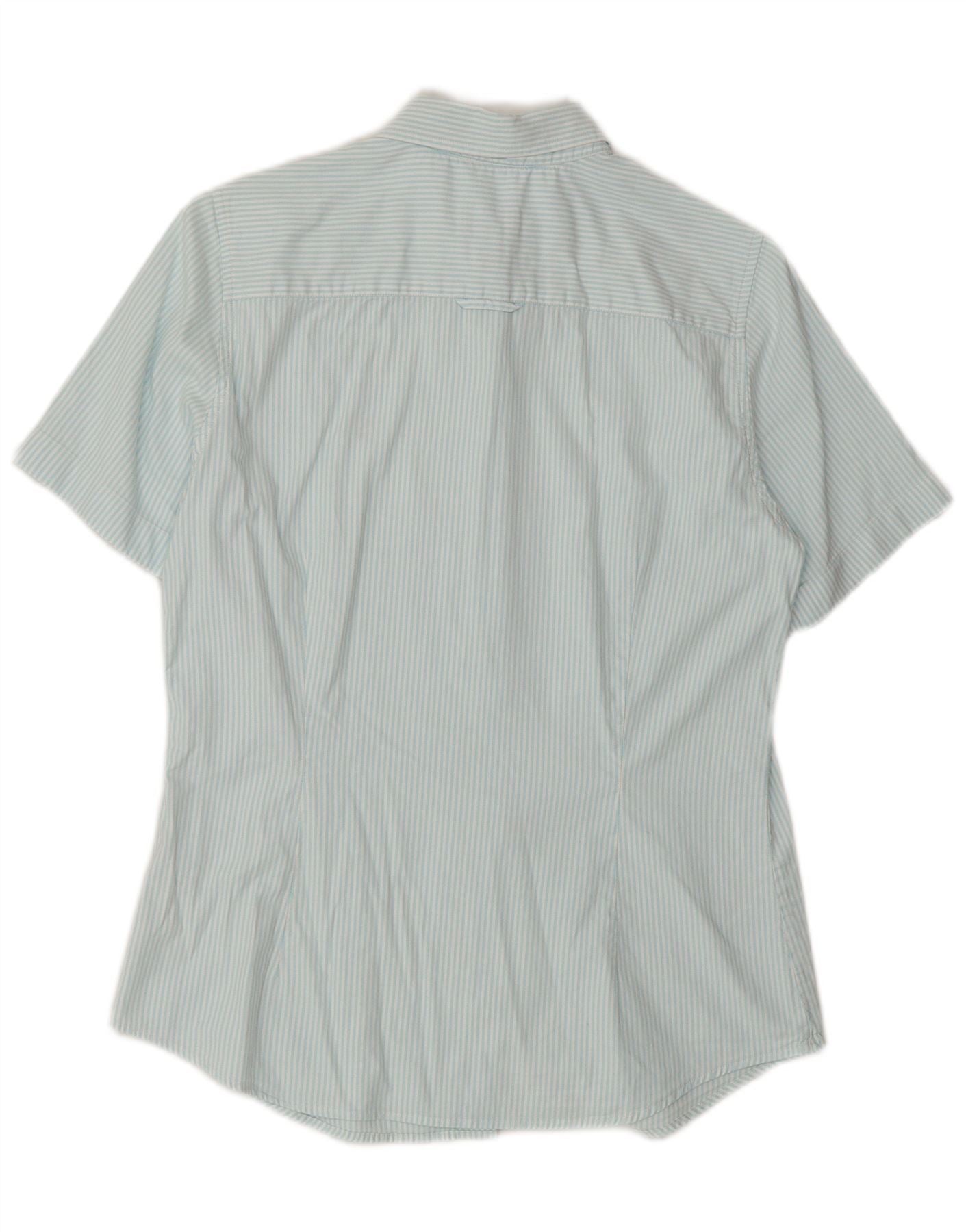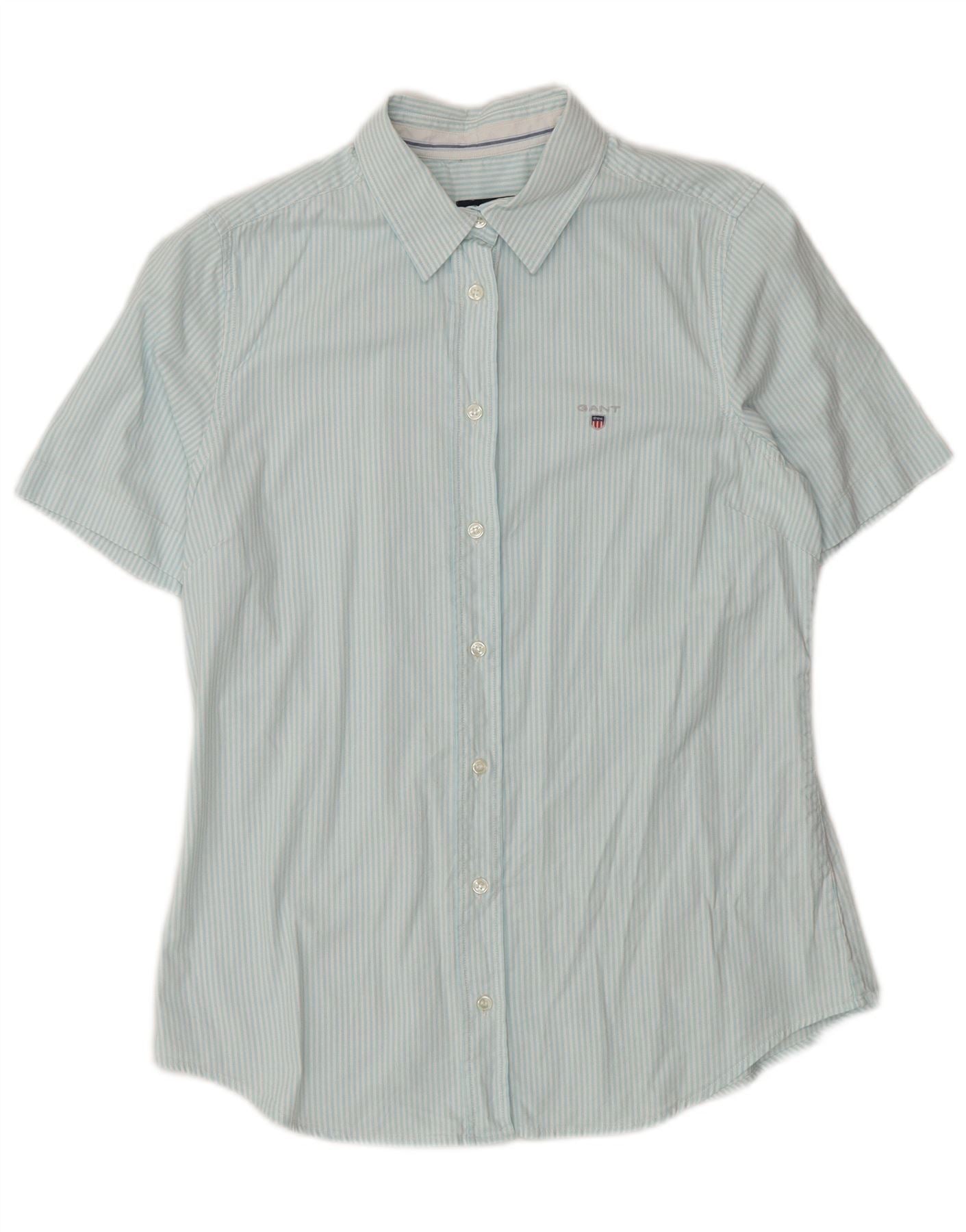 Camisa feminina de manga curta GANT Reino Unido 12 algodão listrado azul médio