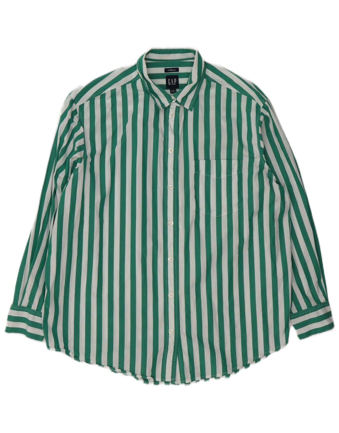 Camisa grande feminina Gap UK 10 algodão listrado verde pequeno