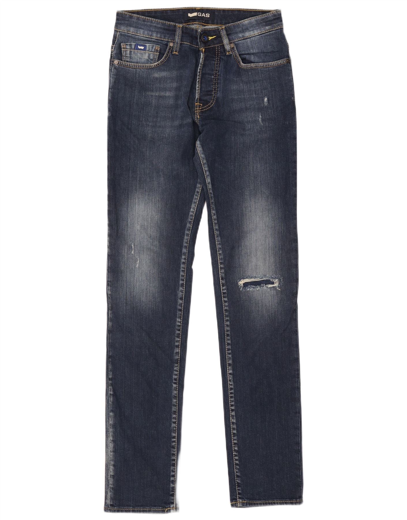GAS Mens Anders Distressed Slim Jeans W30 L34 Azul Marinho Algodão