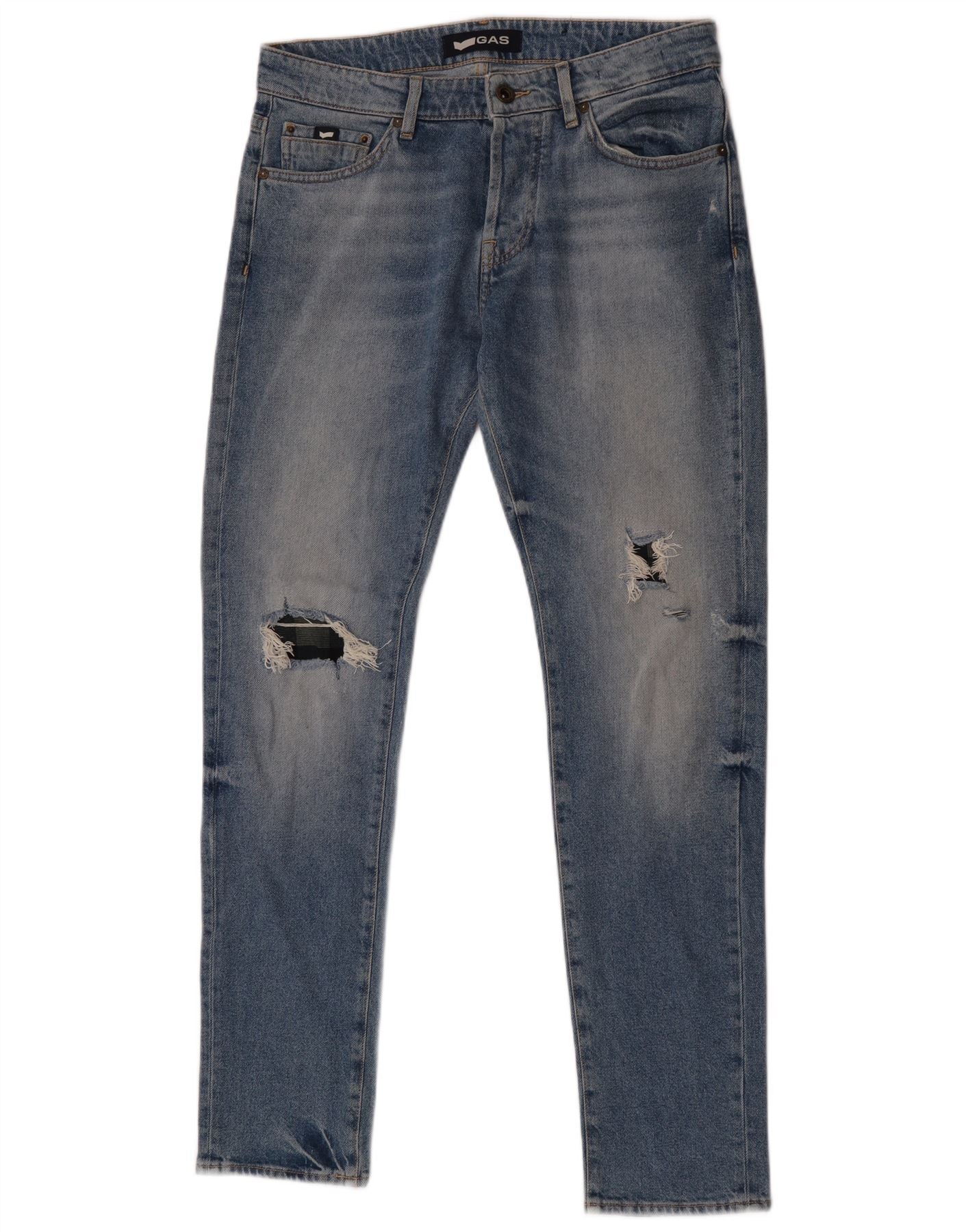 Gas Mens Norton Carrot Distressed Slim Jeans W31 L32 Azul Algodão