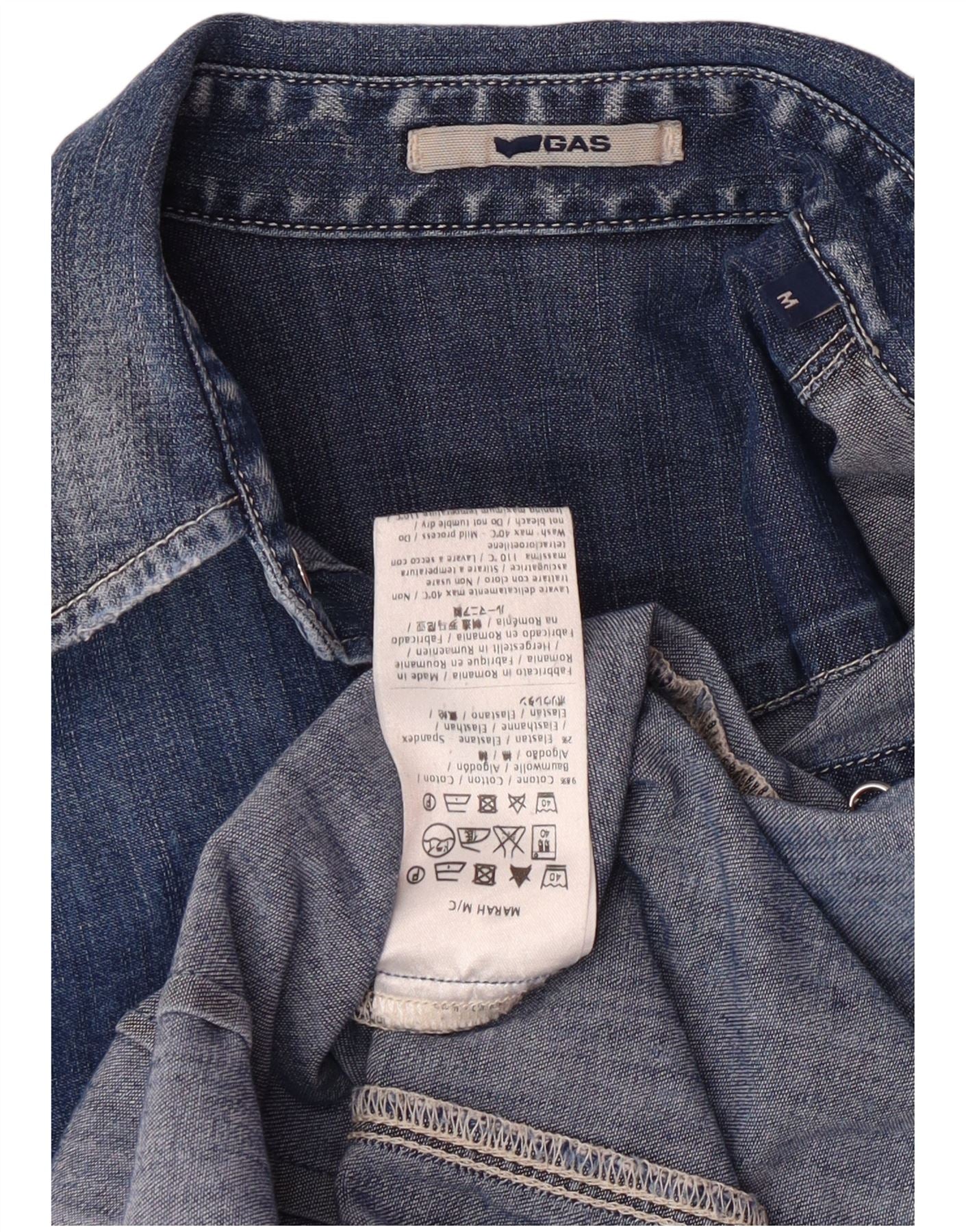 Camisa jeans feminina de manga curta Gas UK 12 algodão azul médio