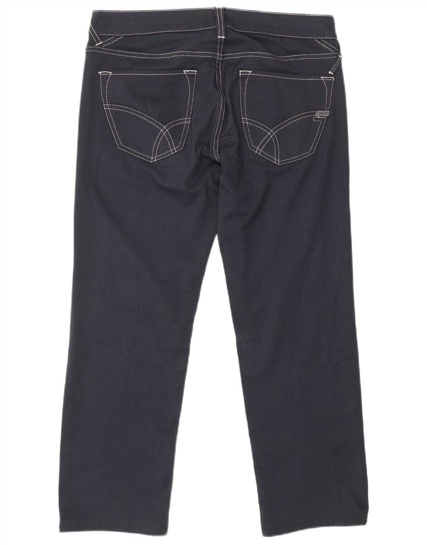 Calça feminina reta casual GAS W32 L26 poliéster azul marinho