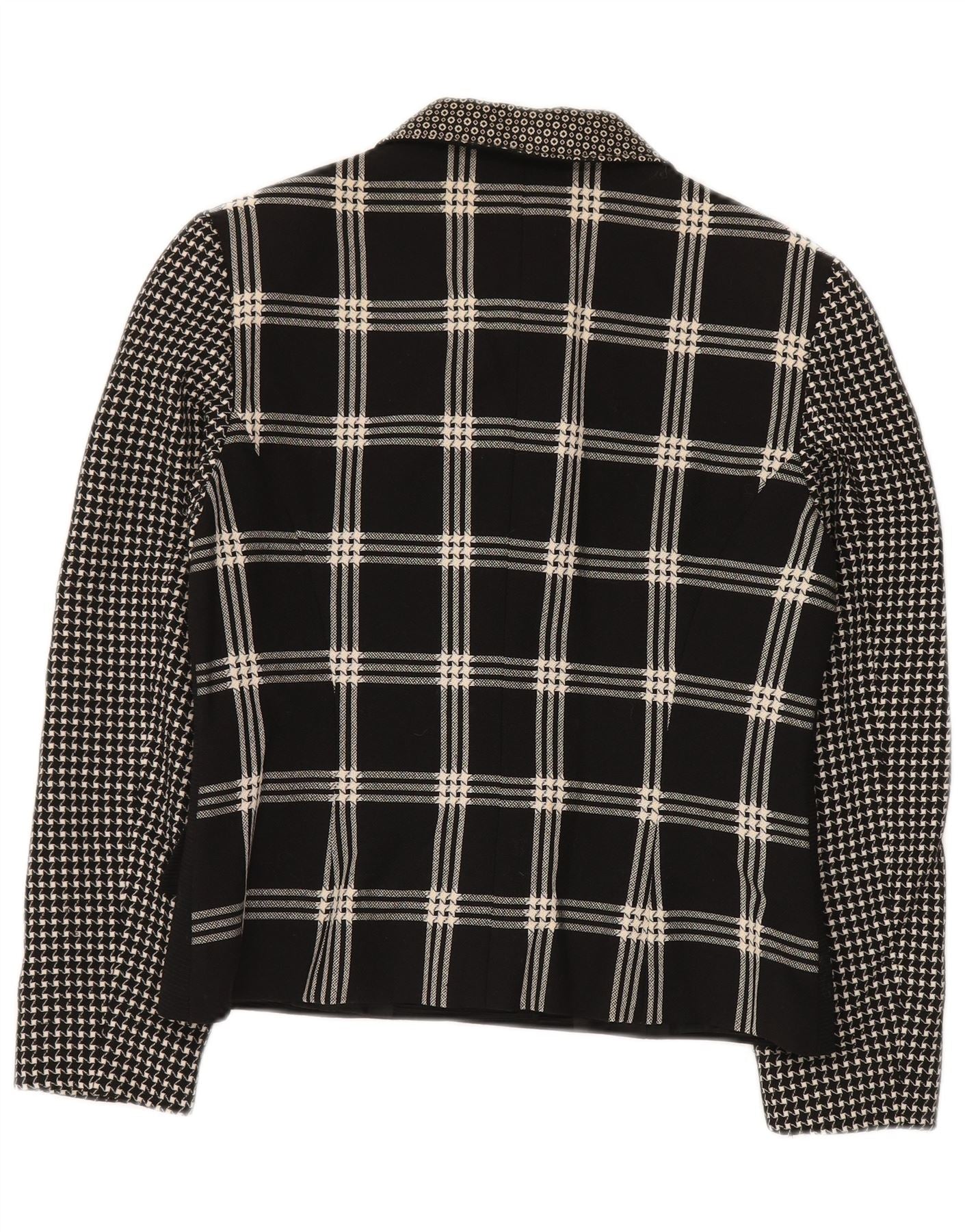 Jaqueta blazer feminina GENNY com 6 botões Reino Unido 14 patchwork preto médio