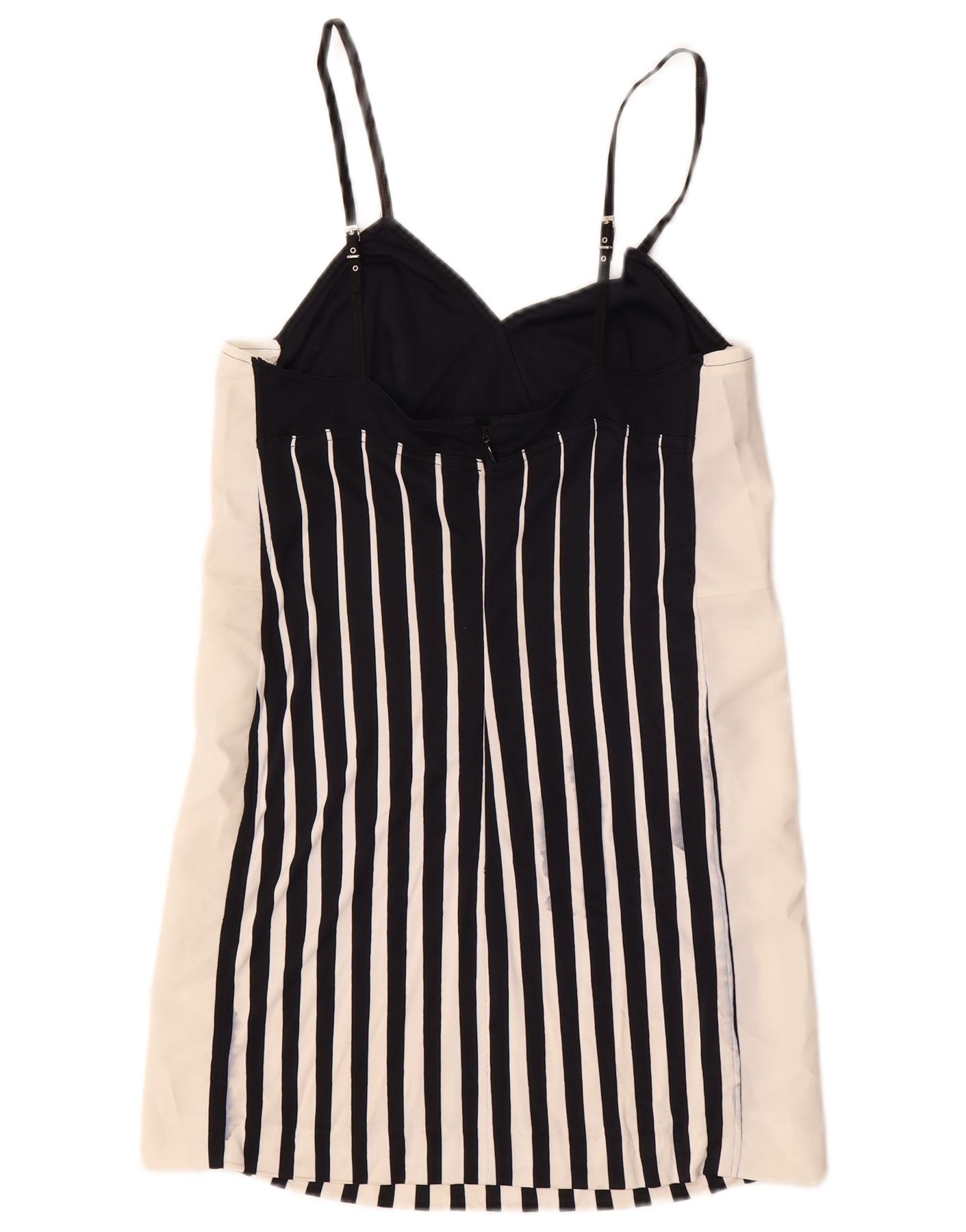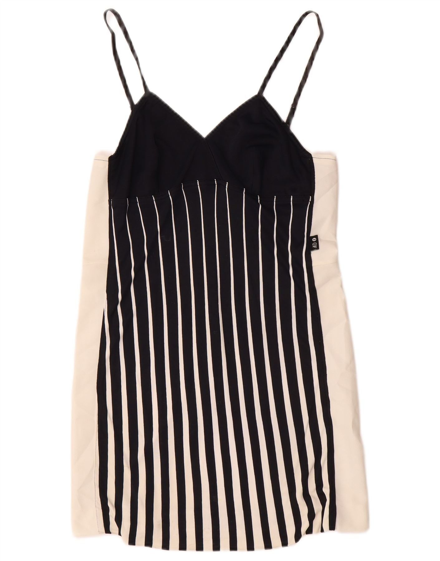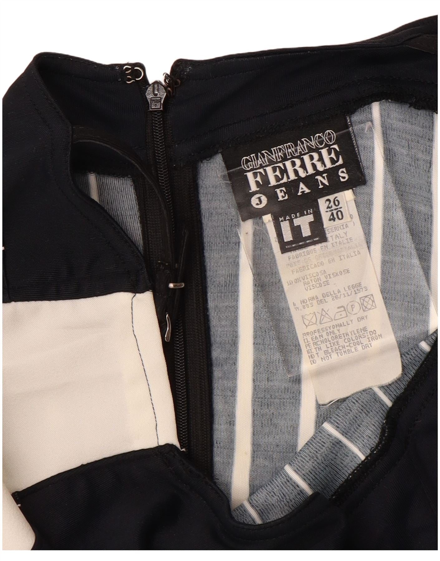 GIANFRANCO FERRE Vestido de verão feminino IT 40 pequeno preto listrado viscose
