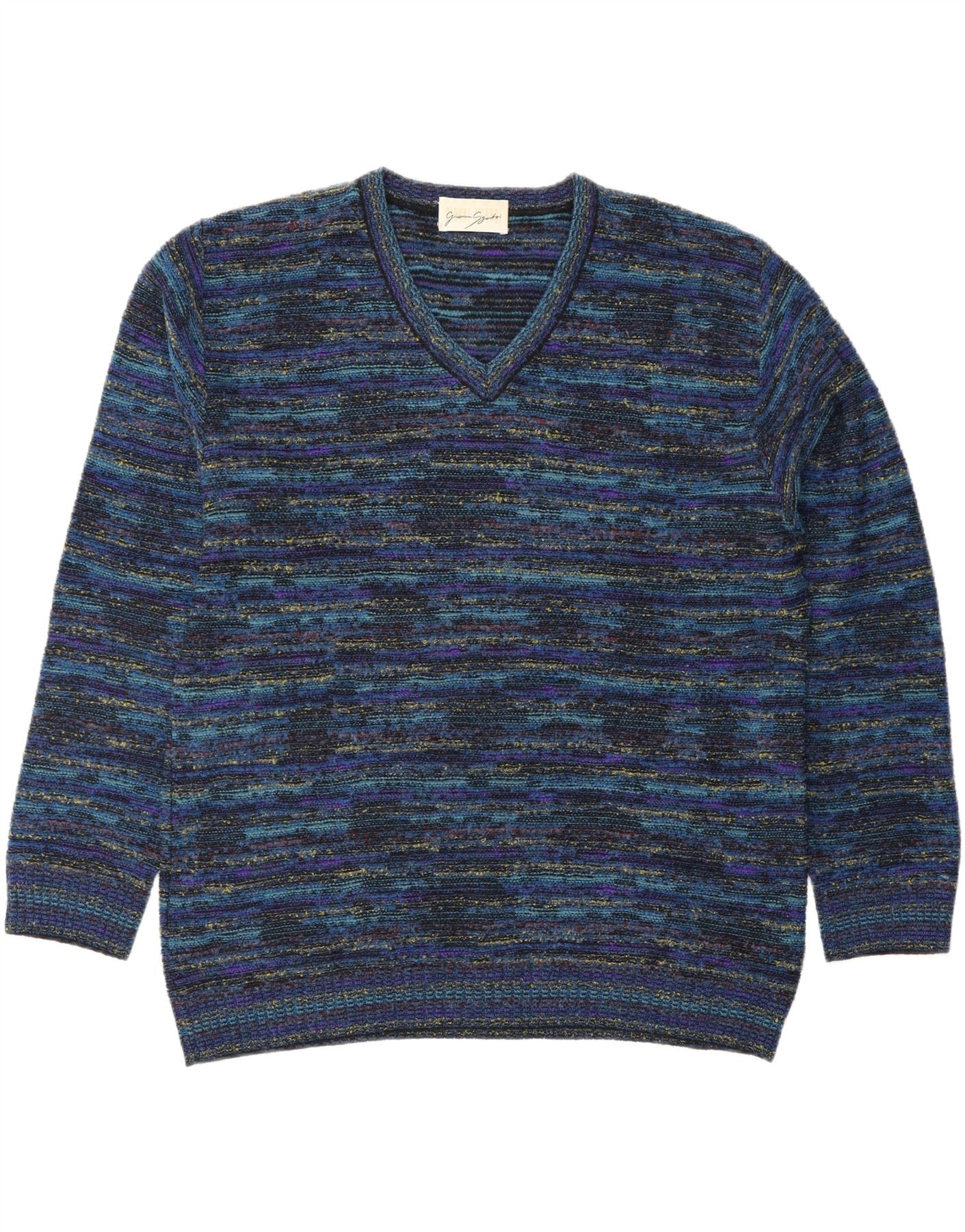 Suéter masculino GIANNI SGARBI com decote em V IT 52 grande lã manchada azul