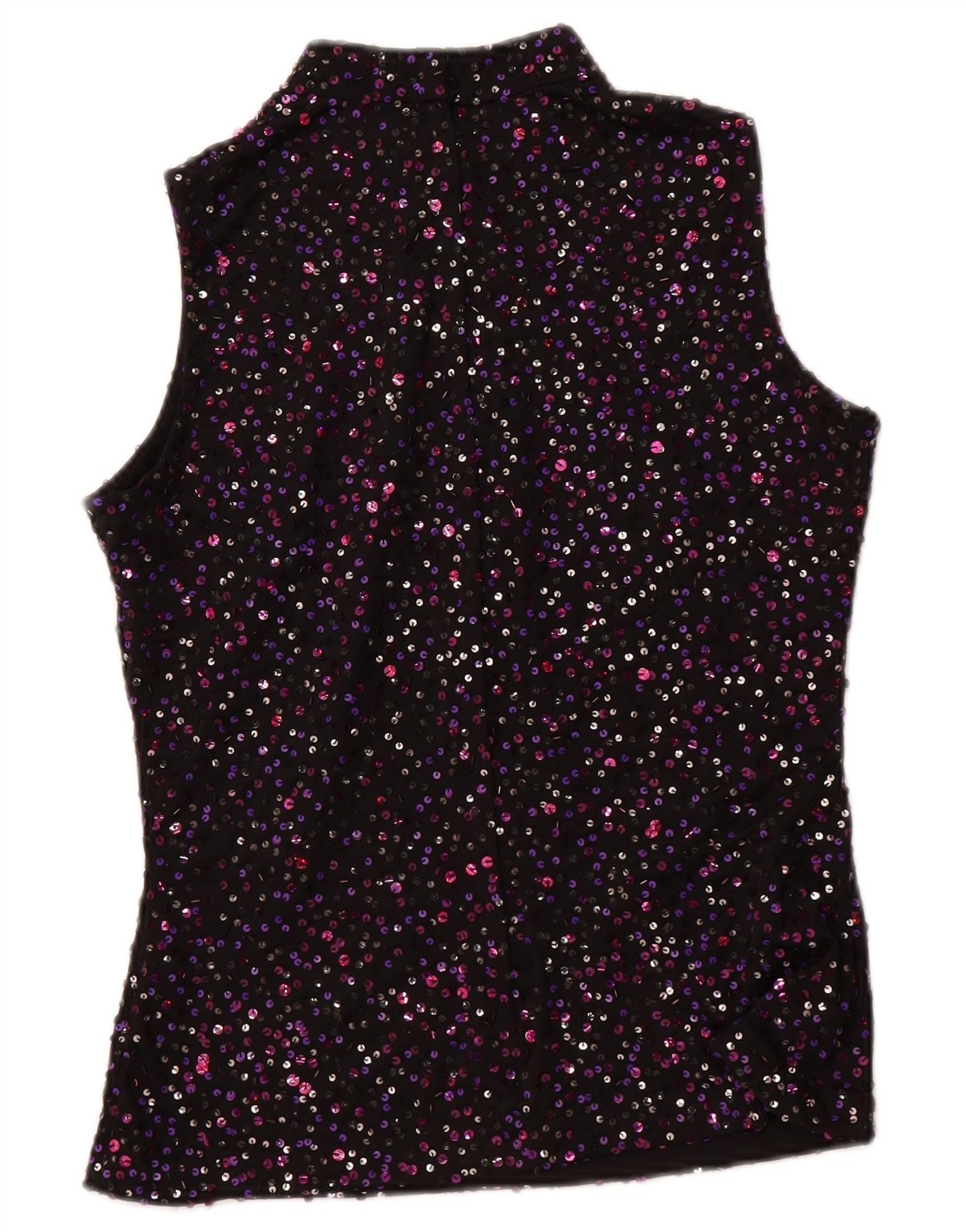 Blusa feminina sem mangas GINA BACCONI Reino Unido 12 médio preto manchado