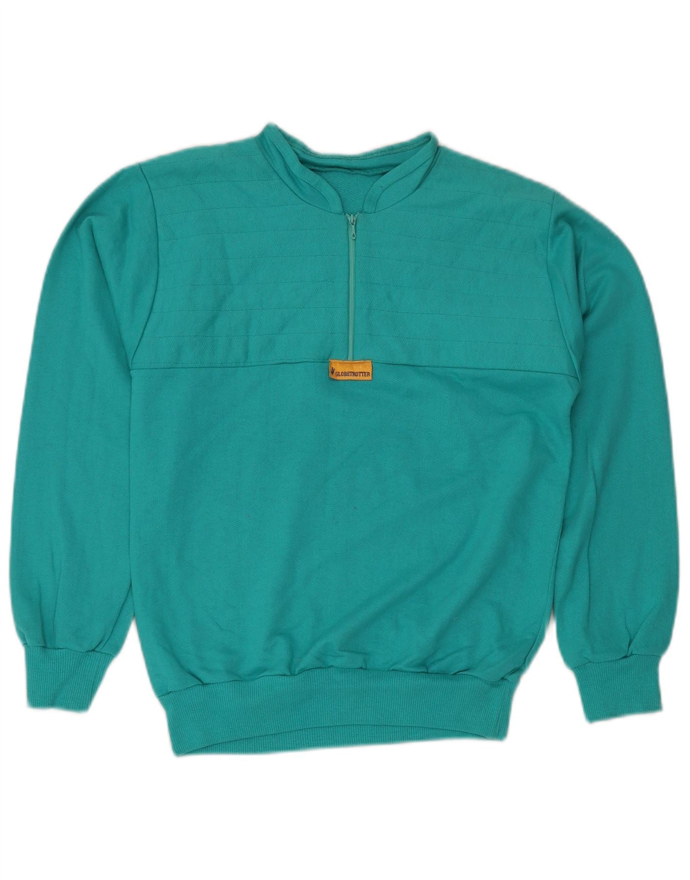 GLOBE TROTTER Suéter feminino com zíper e gola em algodão azul médio UK 14