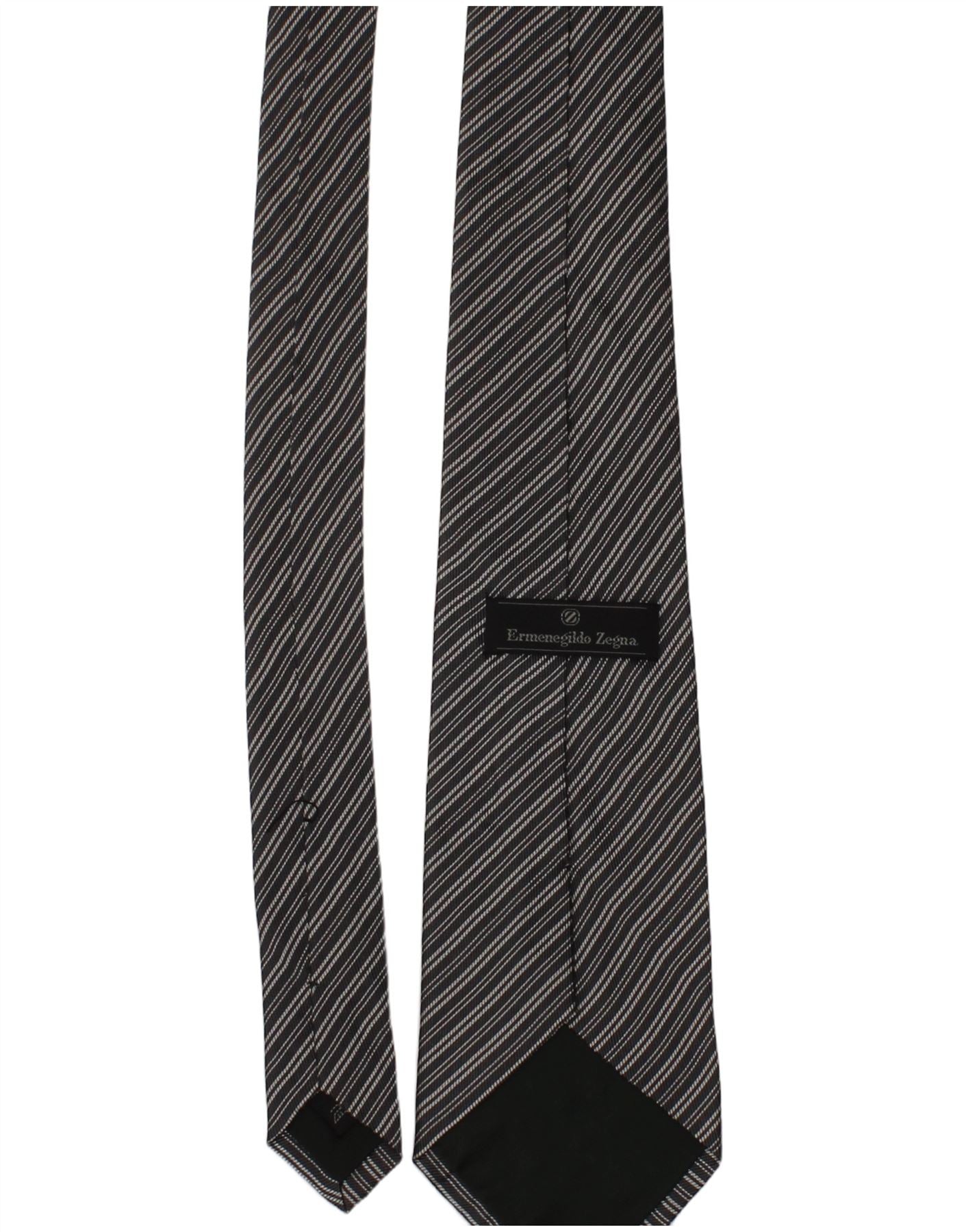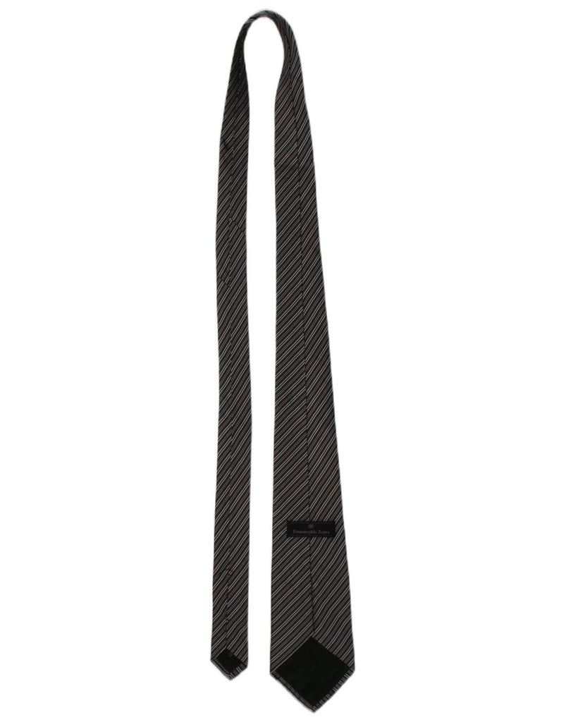 Gravata masculina ERMENEGILDO ZEGNA tamanho único preto listrado de seda clássico