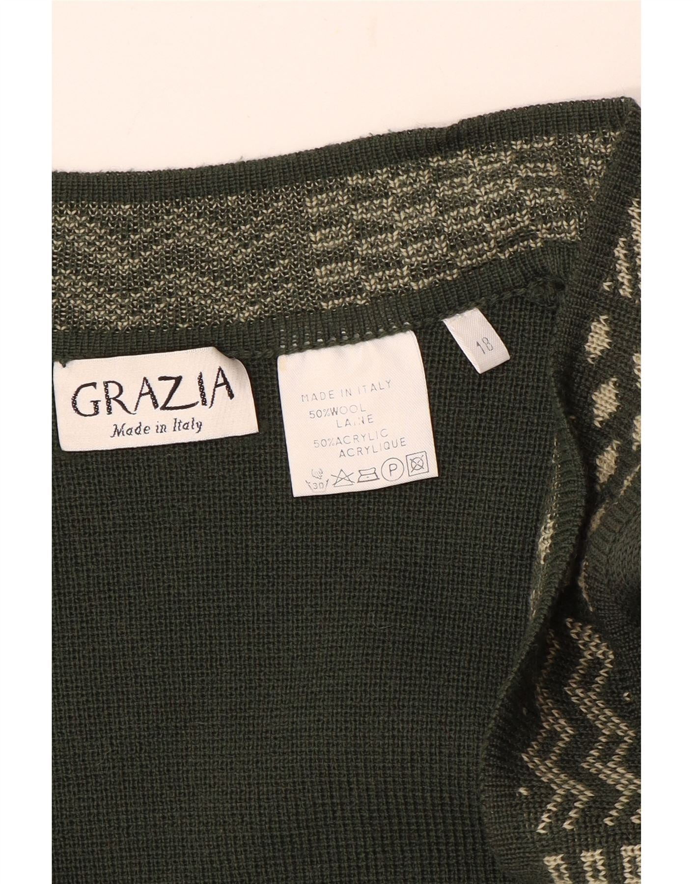 Suéter cardigã feminino com palangre Grazia US 18 2XL lã cáqui