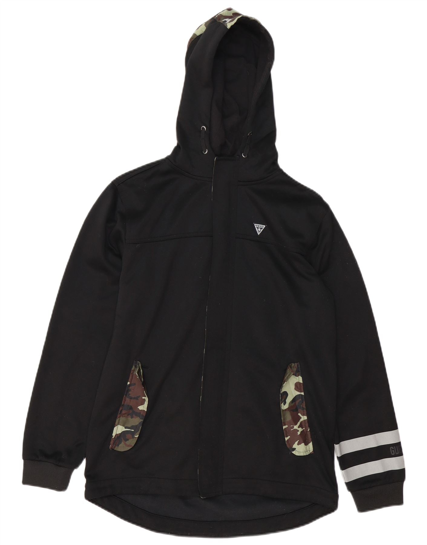 Suéter Guess Boys com capuz e zíper 13-14 anos algodão camuflado preto