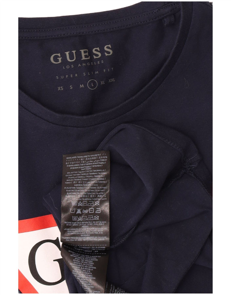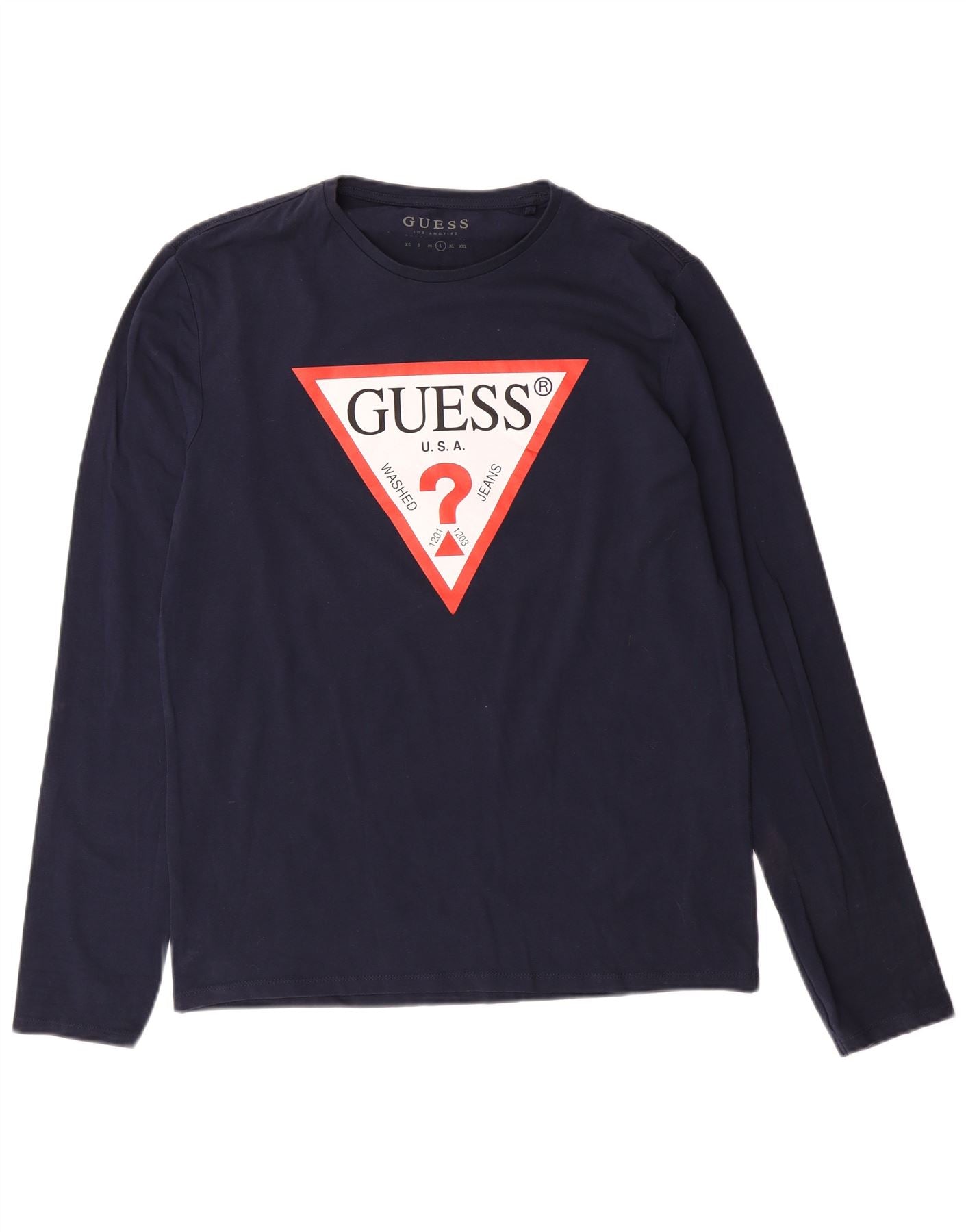 Top gráfico masculino GUESS manga comprida grande algodão azul marinho