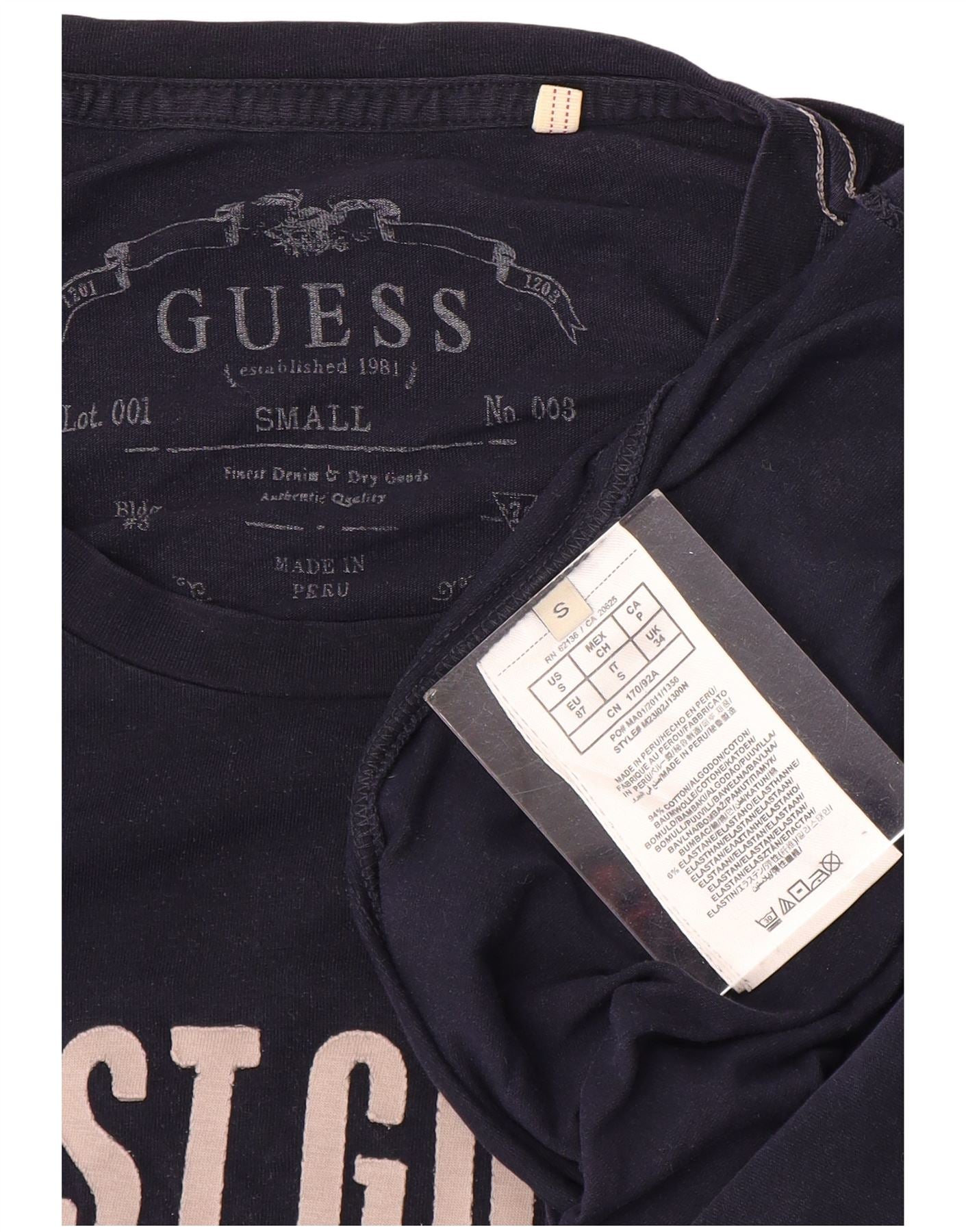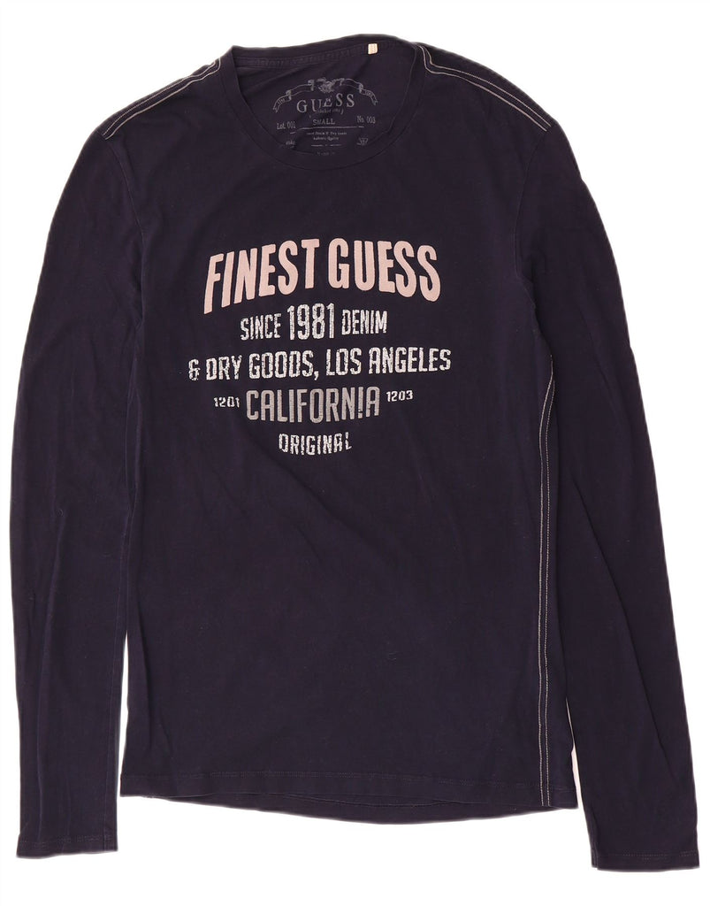 Top gráfico masculino GUESS manga comprida Reino Unido 34 pequeno algodão azul marinho