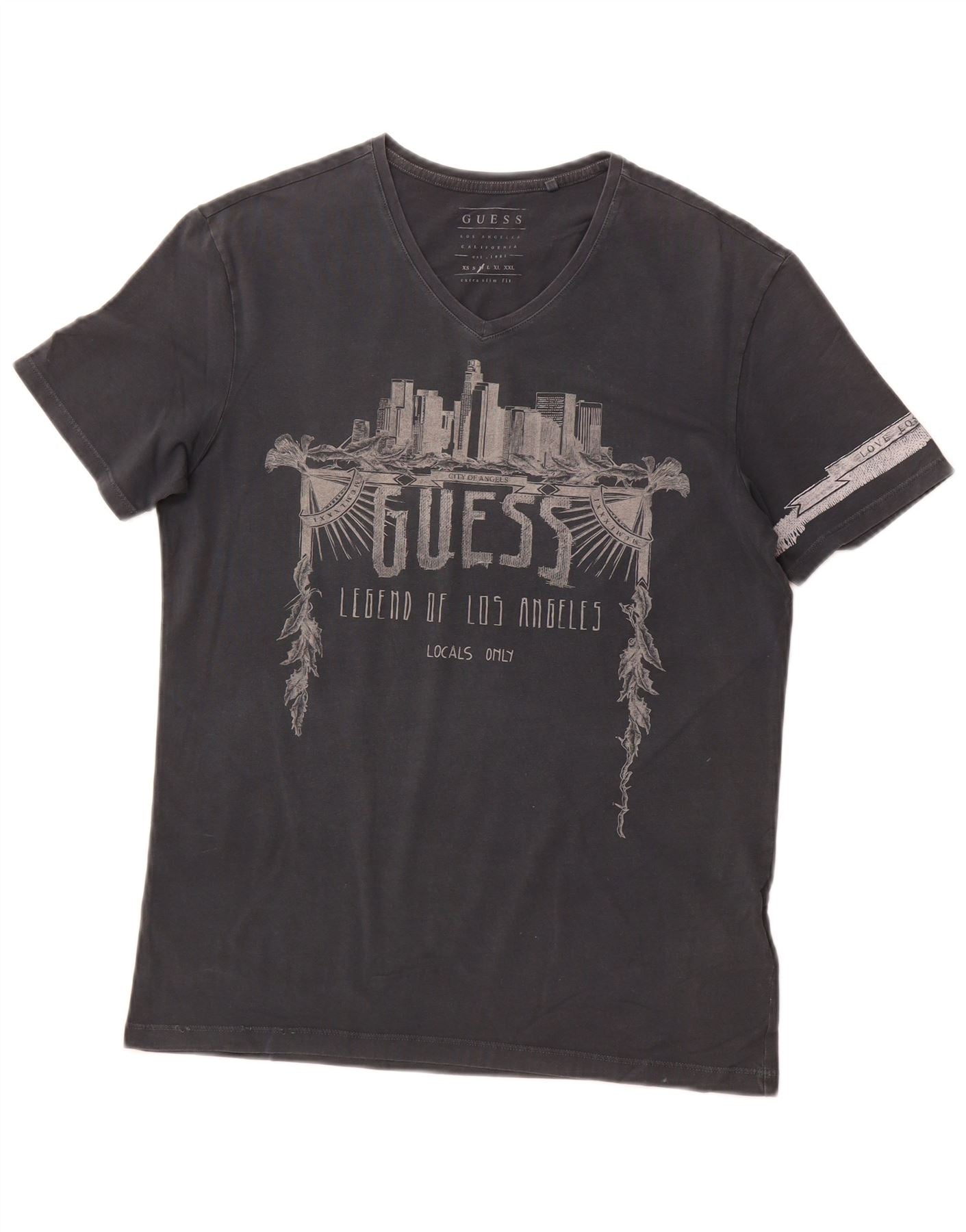 Camiseta masculina GUESS Los Angeles Extra Slim com estampa gráfica cinza médio algodão