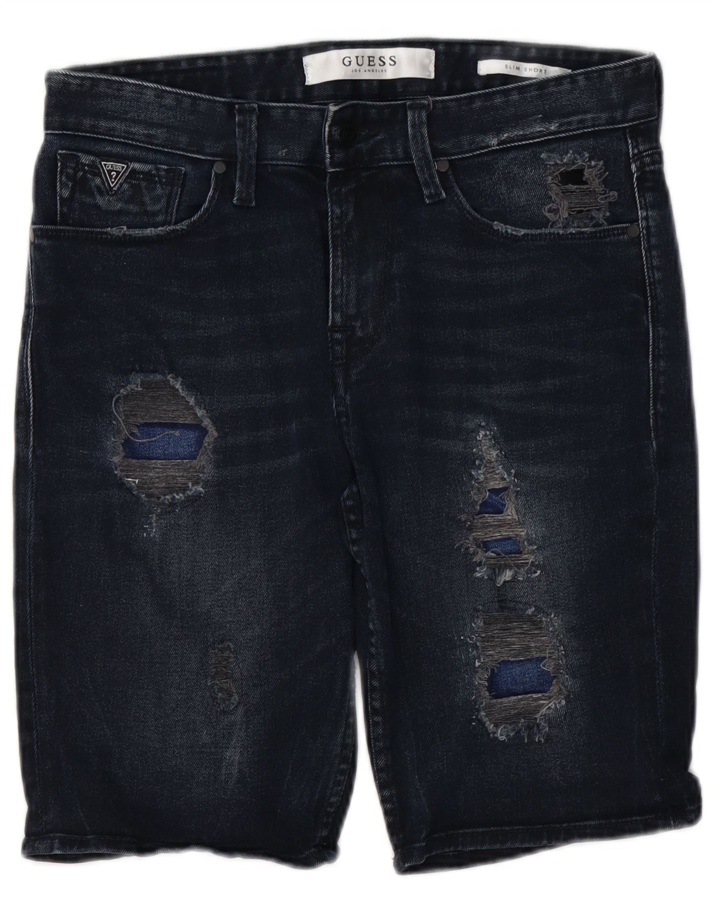 Shorts jeans masculino slim desgastado GUESS W30 algodão azul marinho médio