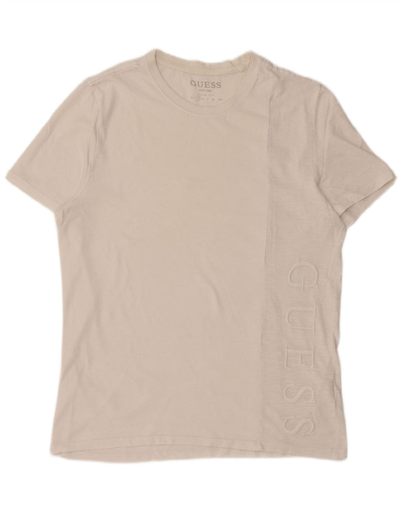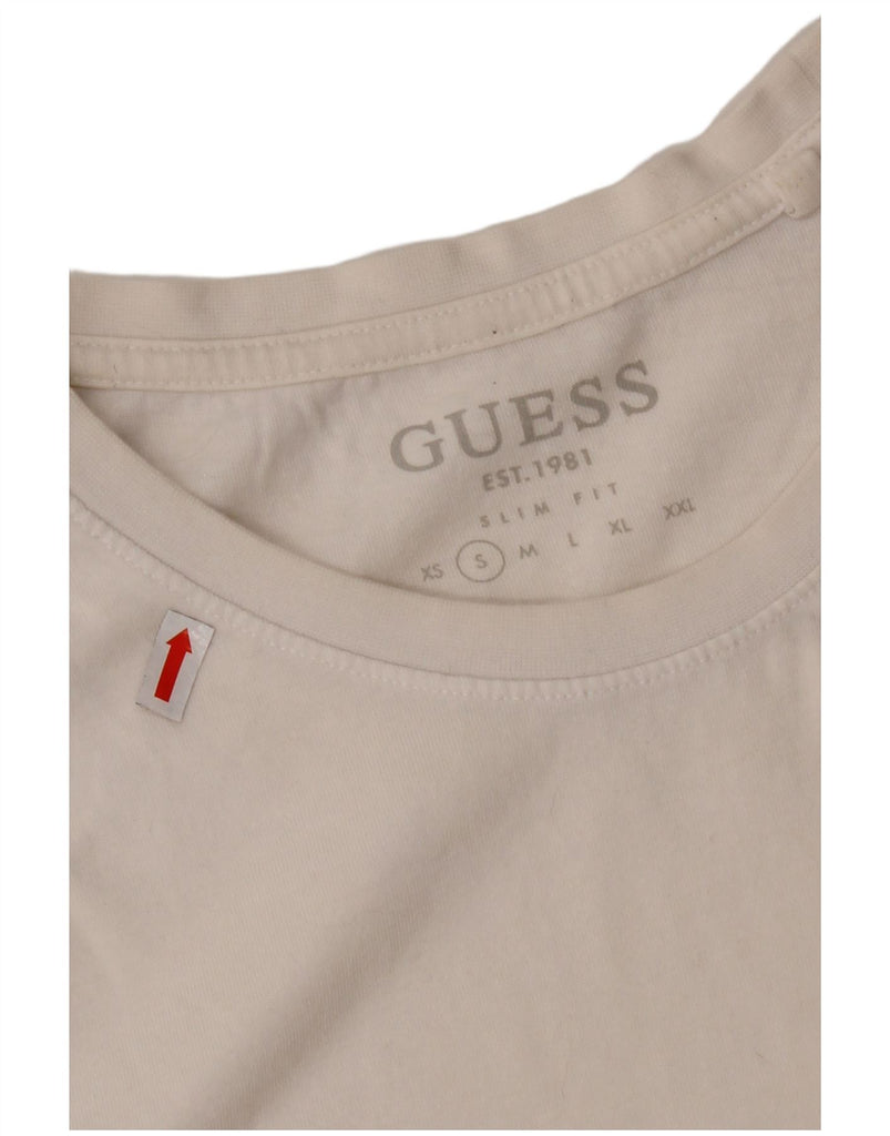 Camiseta masculina GUESS Slim Fit com estampa gráfica pequena de algodão branco