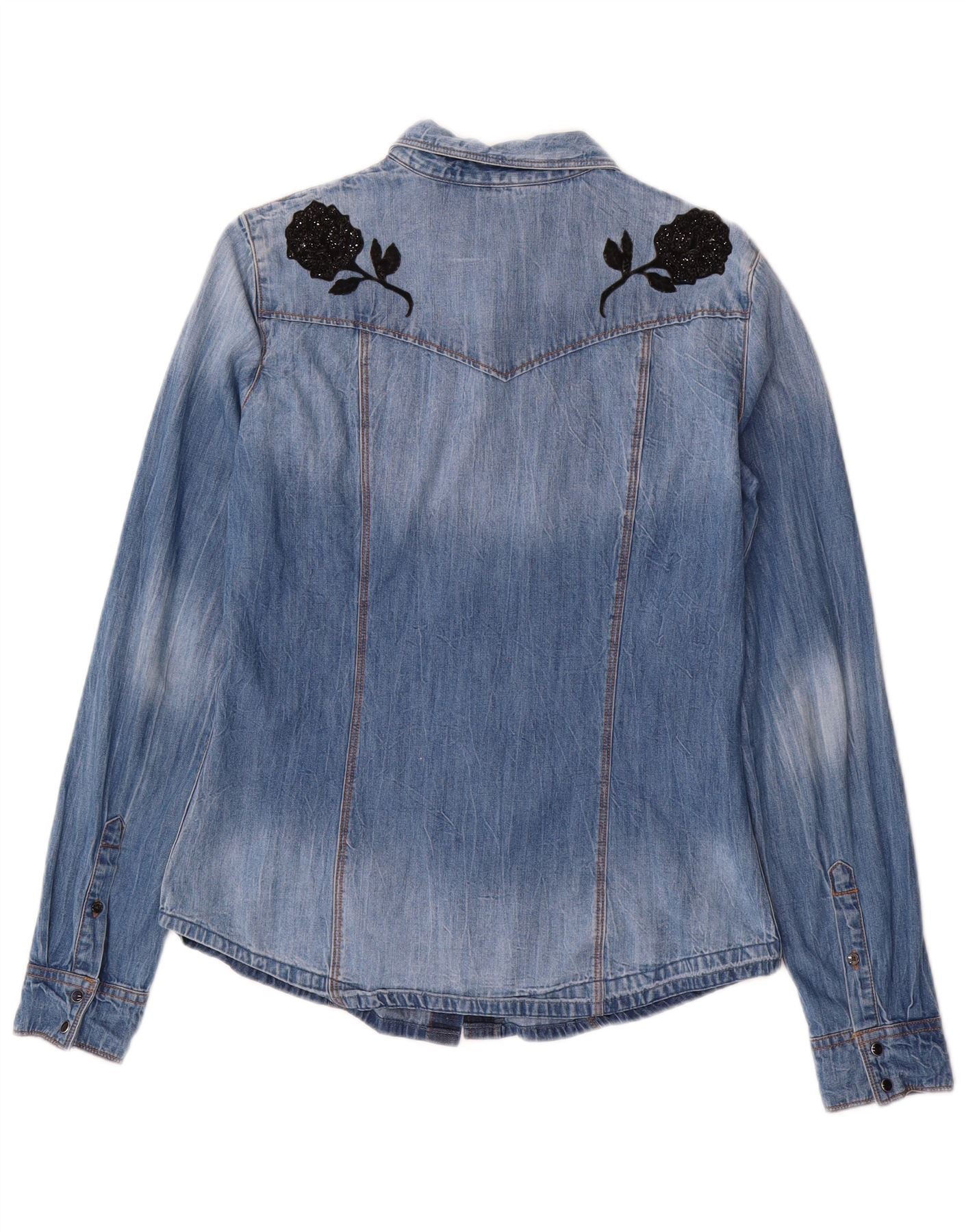 Camisa jeans feminina GUESS UK 14 azul médio floral