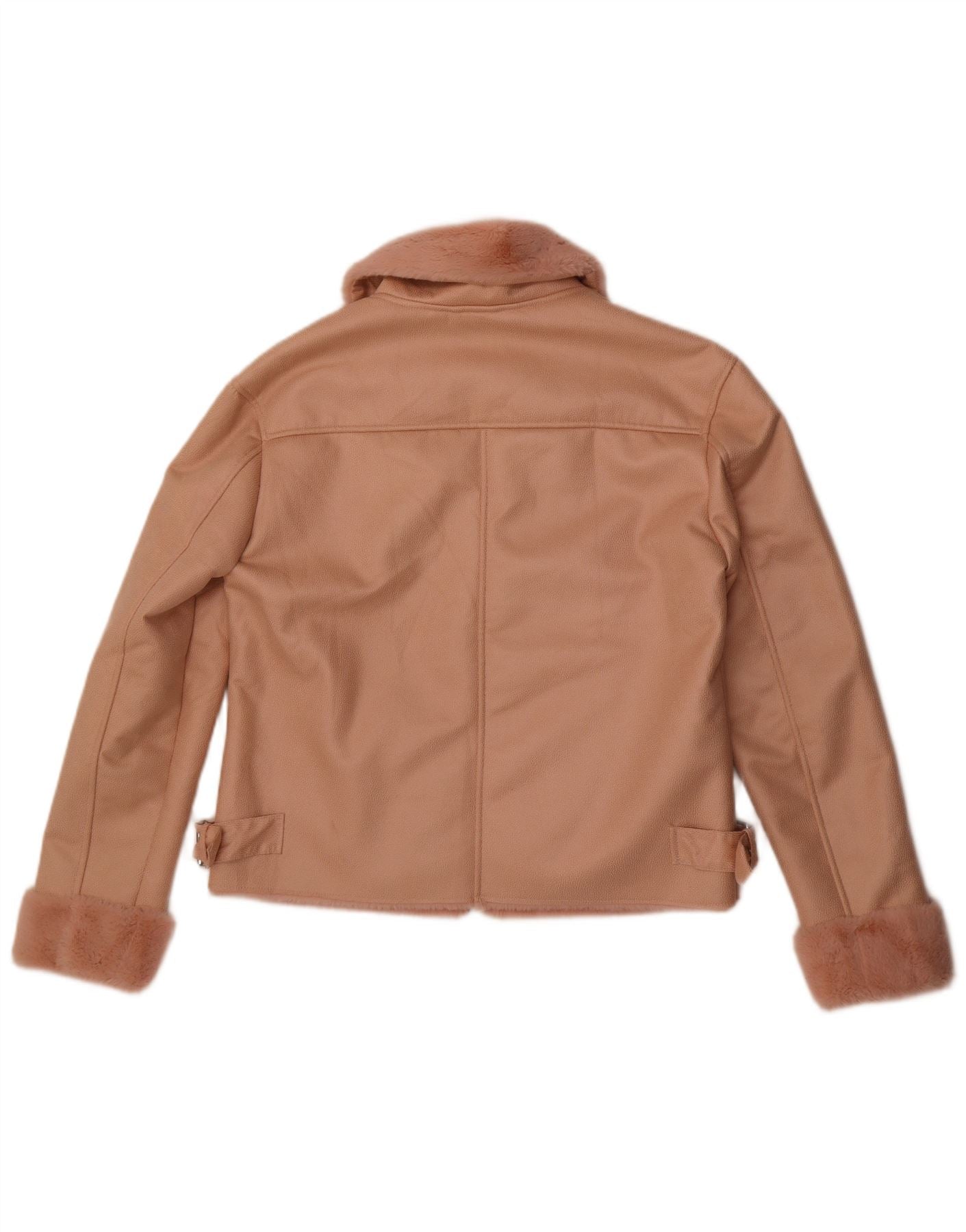 Jaqueta feminina Sherpa de couro sintético Guess UK 12 poliéster rosa médio
