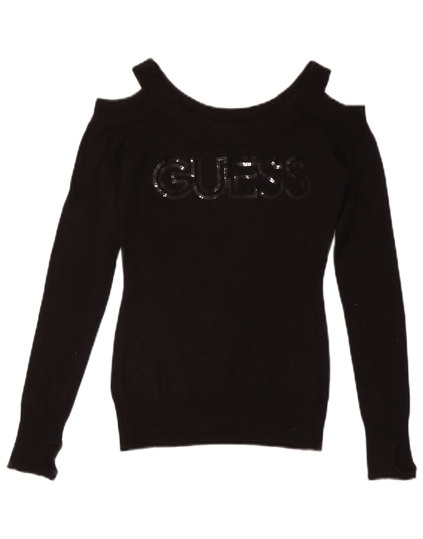 Suéter feminino GUESS com gola canoa e gola redonda Reino Unido 8 pequeno preto