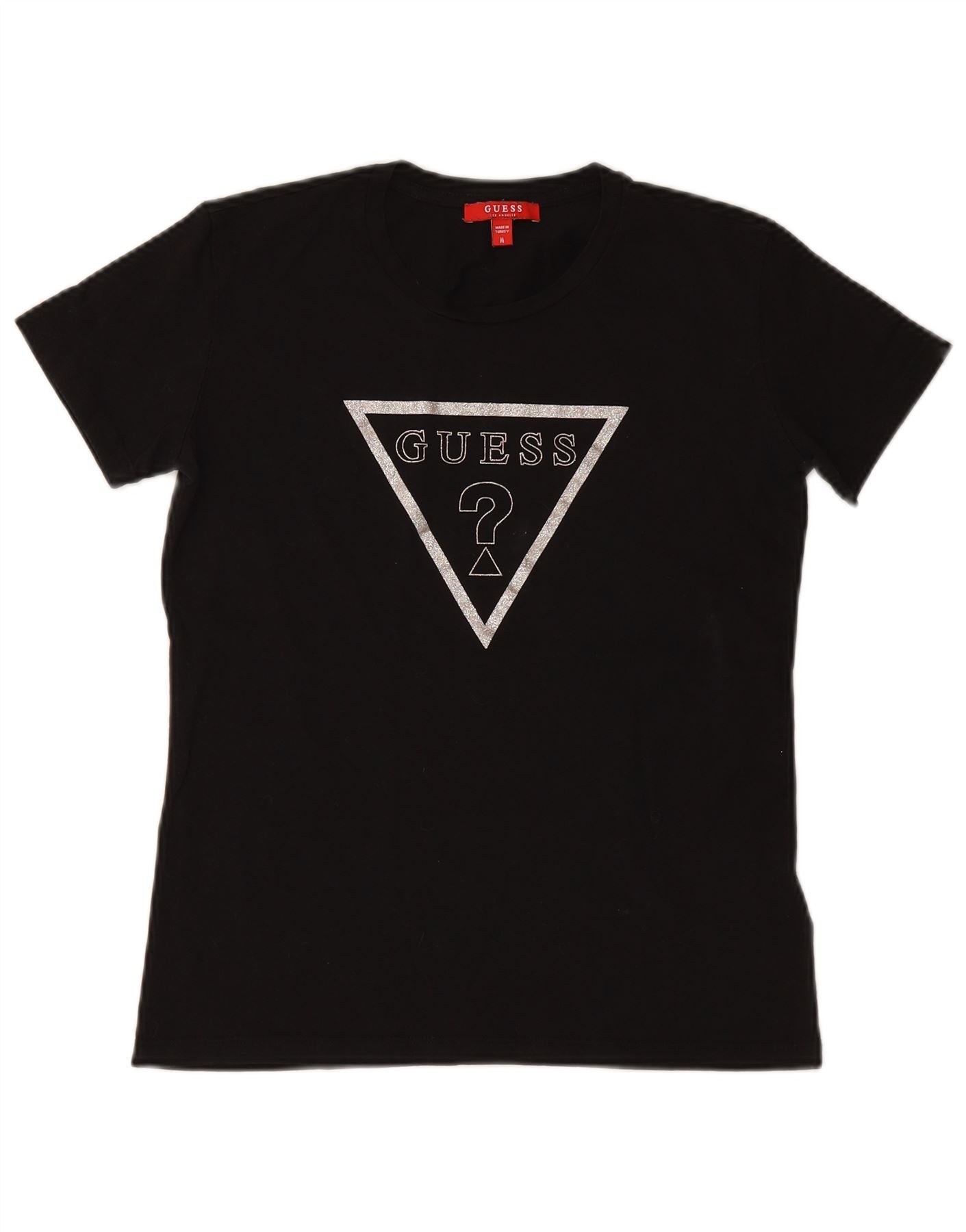 Camiseta feminina gráfica GUESS UK 12 algodão preto médio