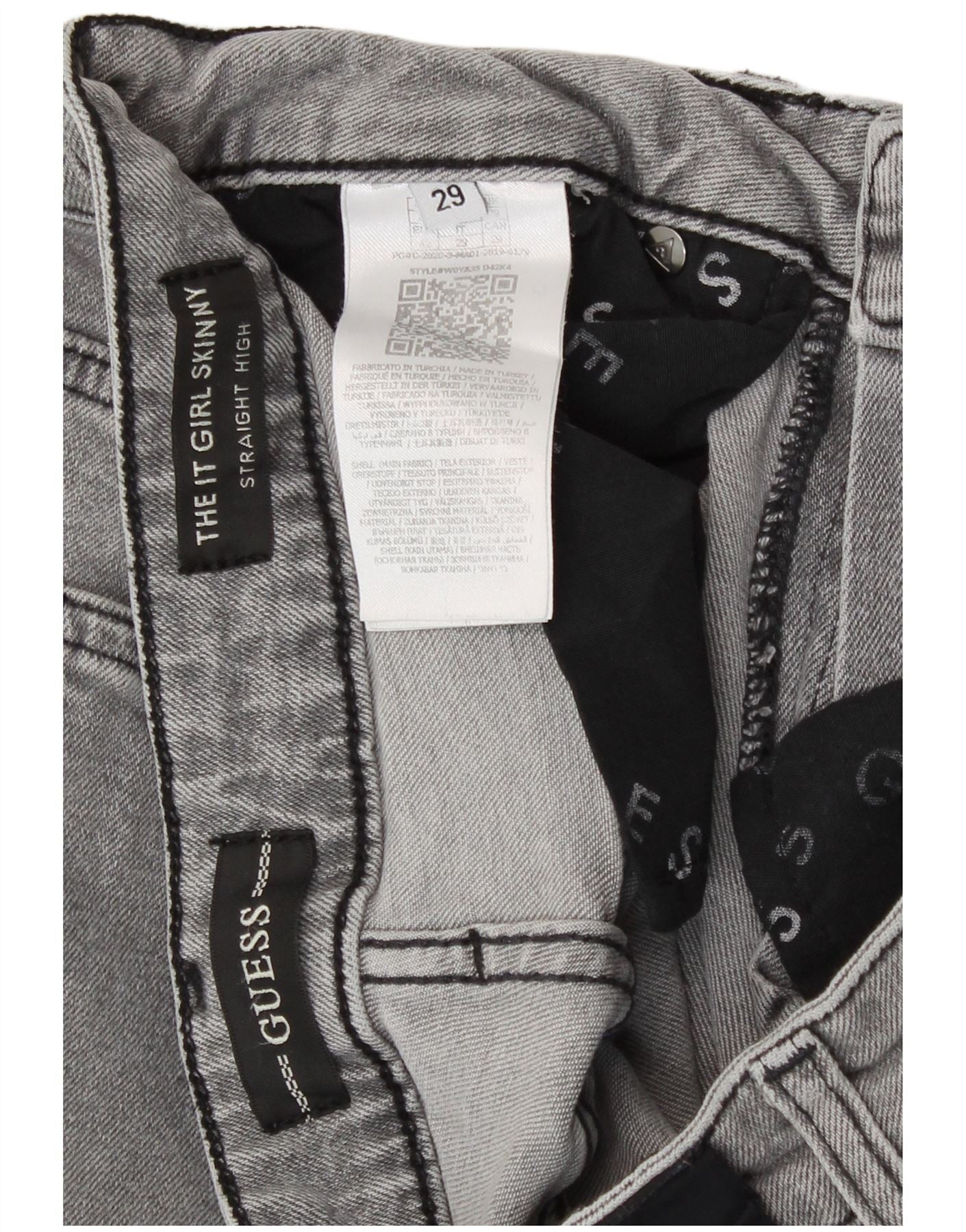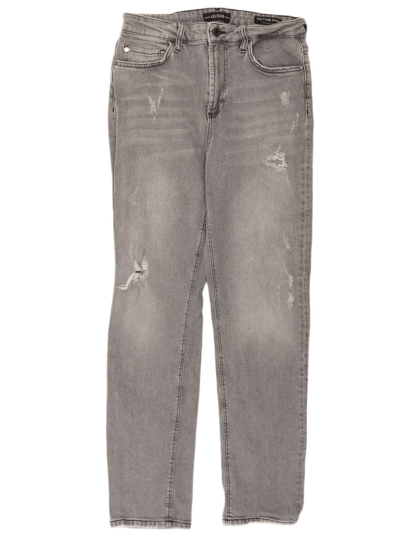 Guess Calça jeans feminina cintura alta desgastada reta W29 L27 algodão cinza