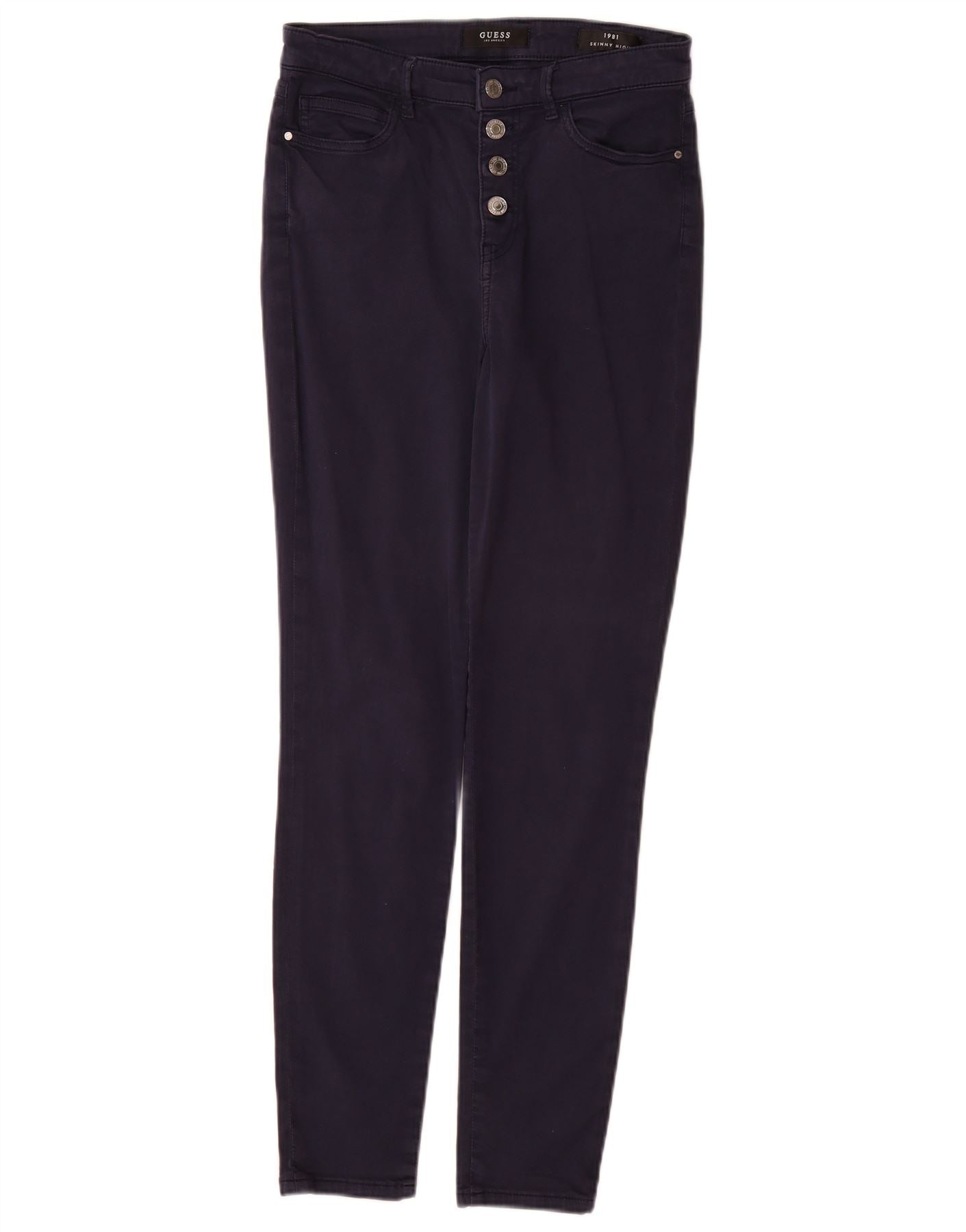 Calça feminina casual skinny de cintura alta GUESS W28 L30 algodão azul marinho
