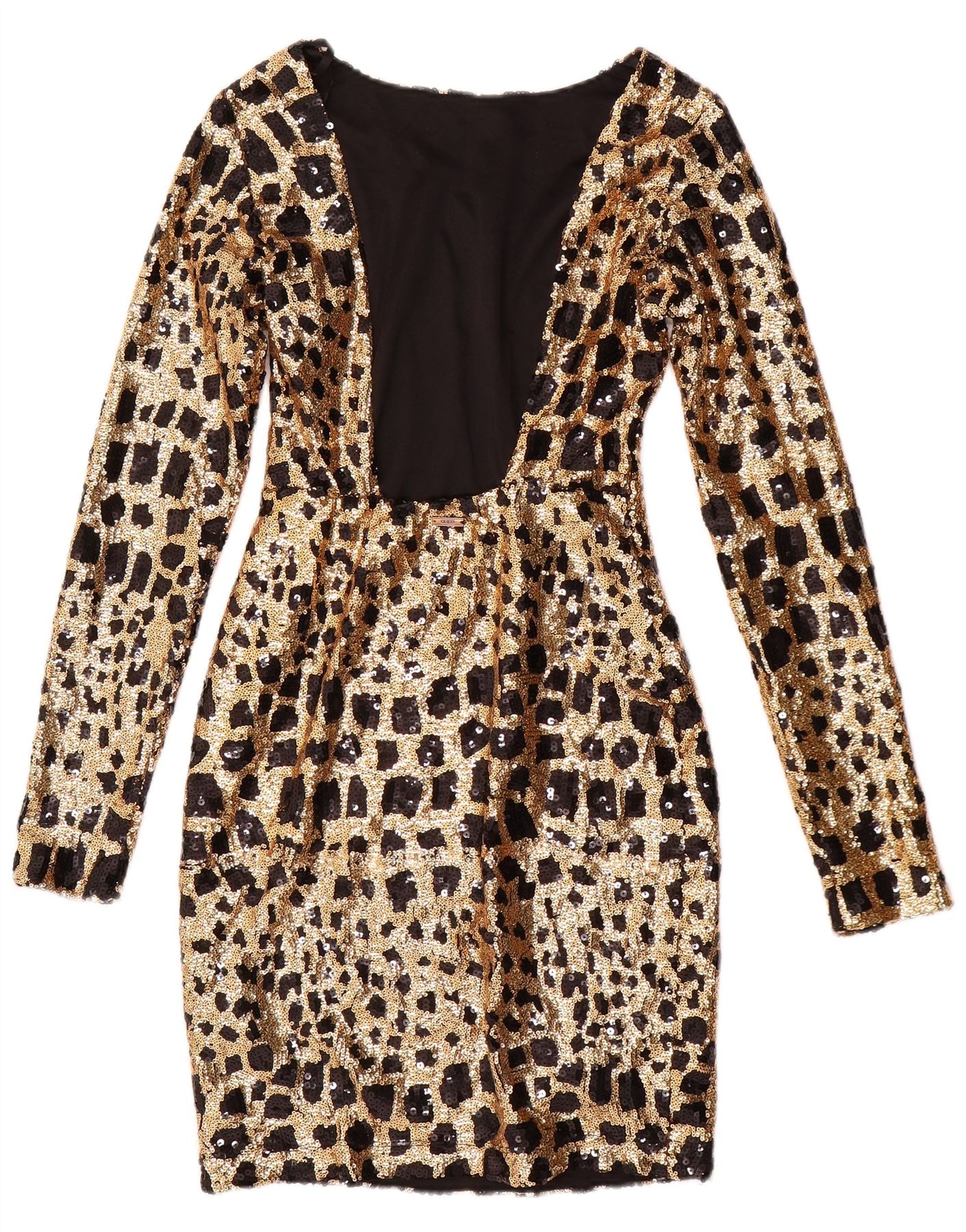 Home > mulheres > Roupas Depop > Vestido bodycon feminino de manga comprida com lantejoulas GUESS Reino Unido 6 XS dourado geométrico