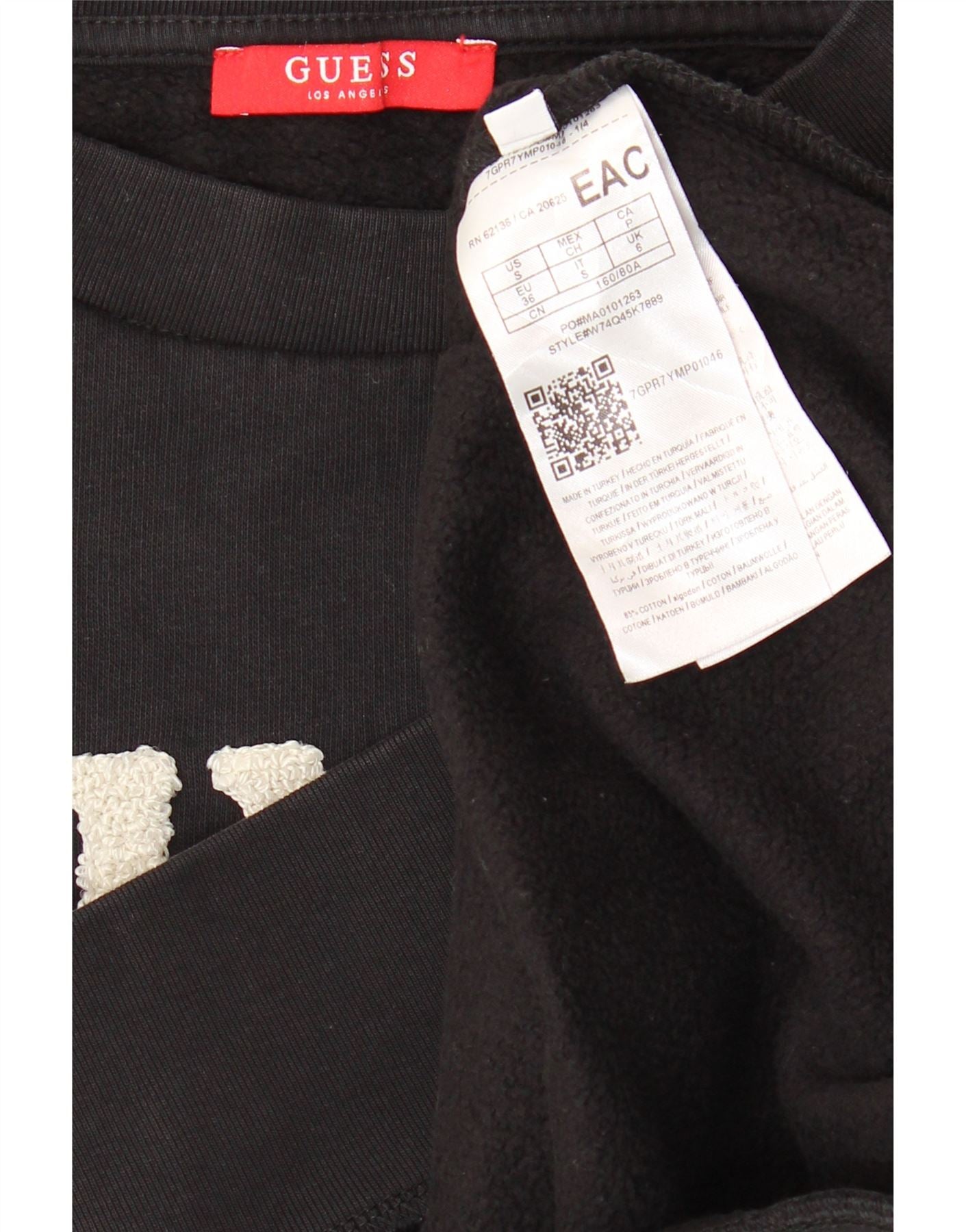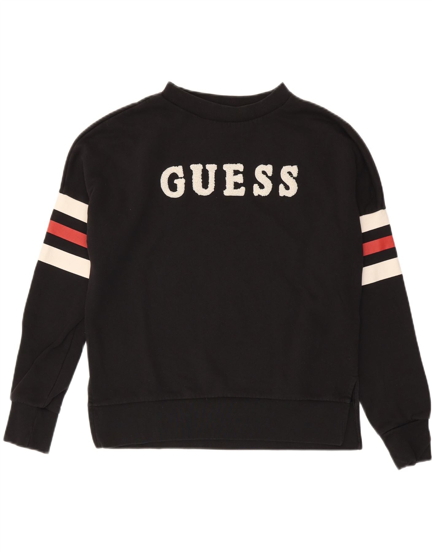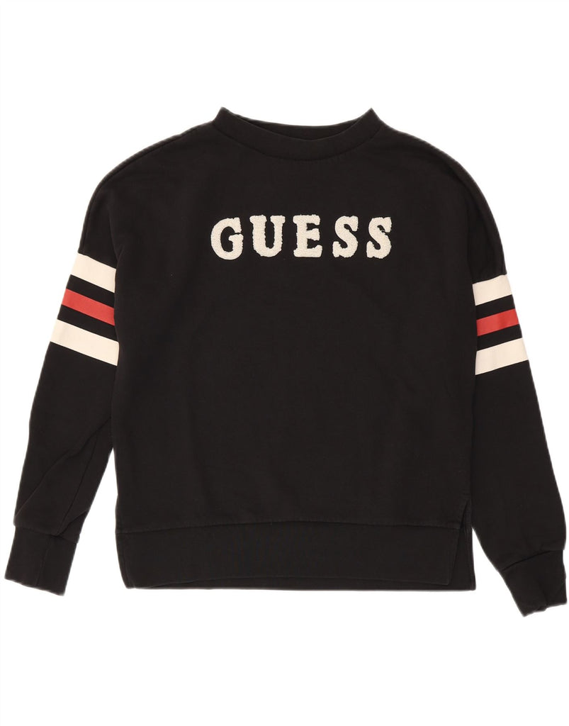 GUESS Womens Oversized Graphic Sweatshirt Jumper UK 6 XS Black Striped
