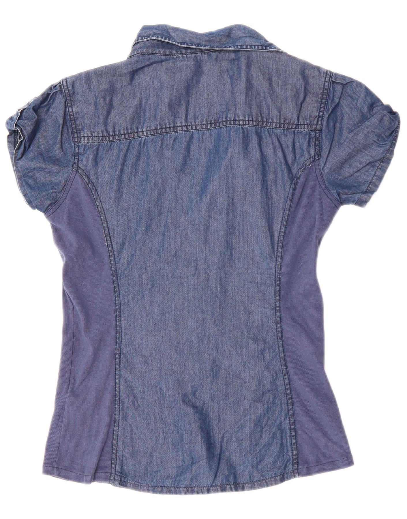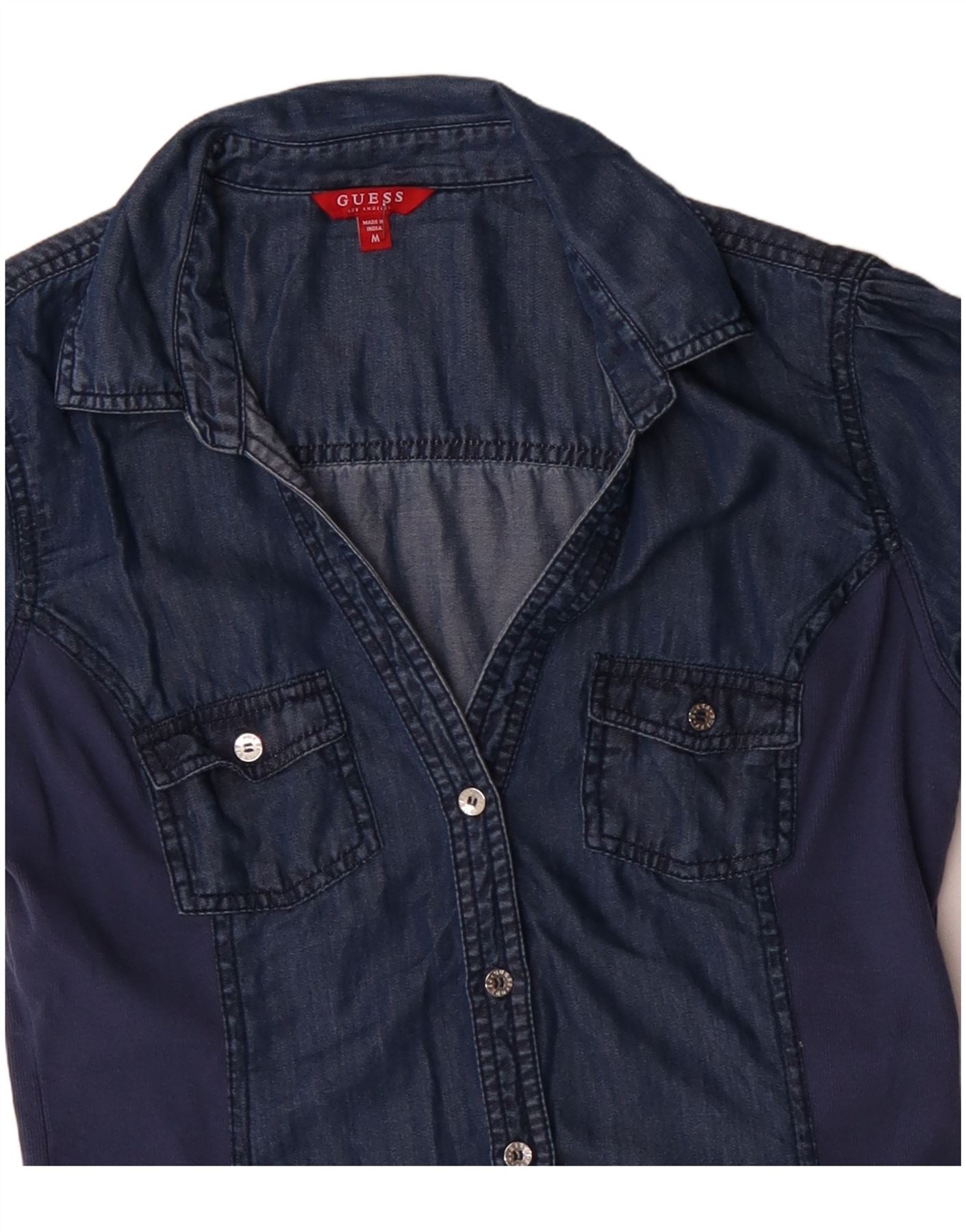 Blusa feminina jeans de manga curta GUESS Reino Unido 12 médio azul marinho Tencel