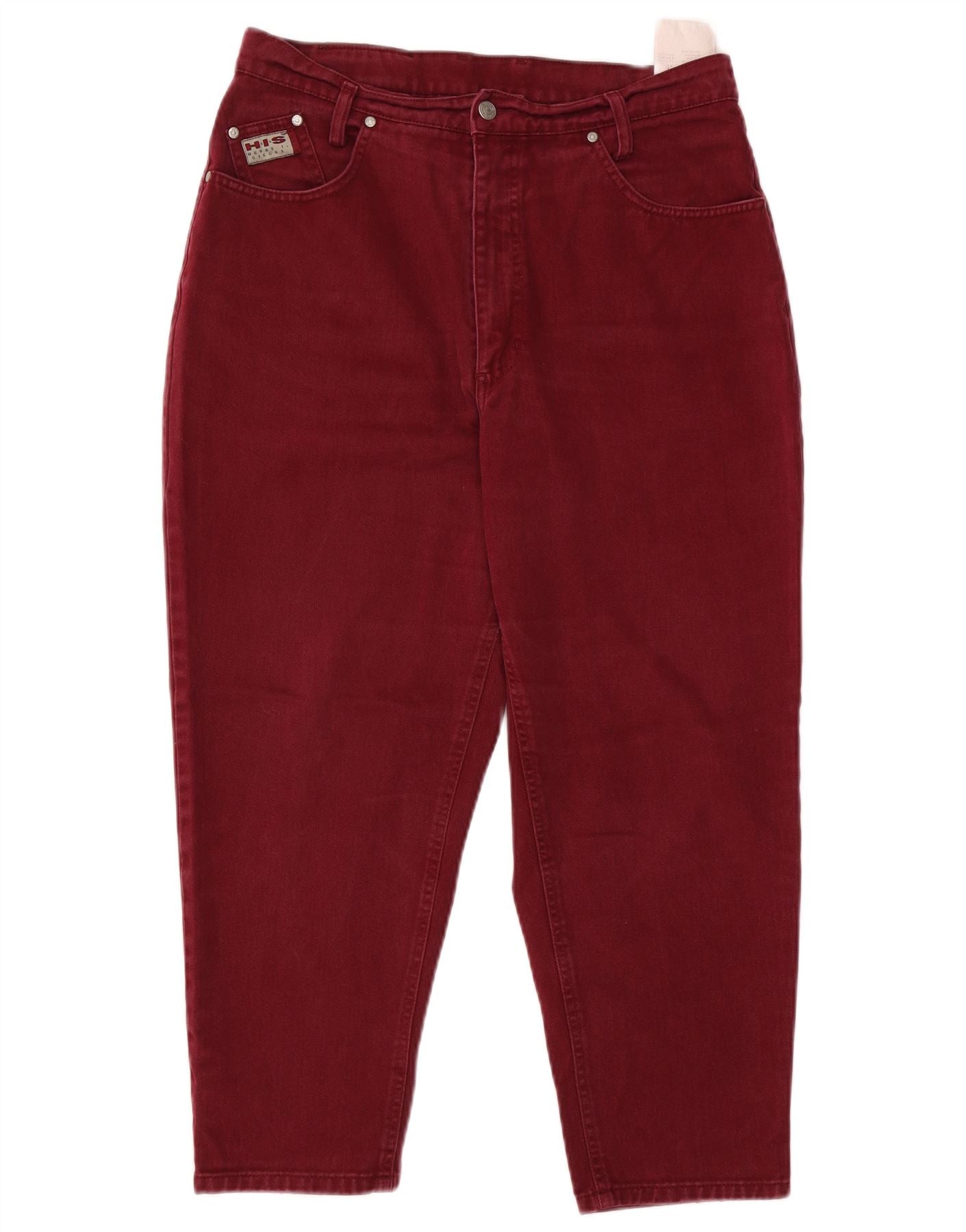 Calça jeans feminina H.I.S com cintura alta e cintura alta Reino Unido 20 2XL W34 L25 Borgonha